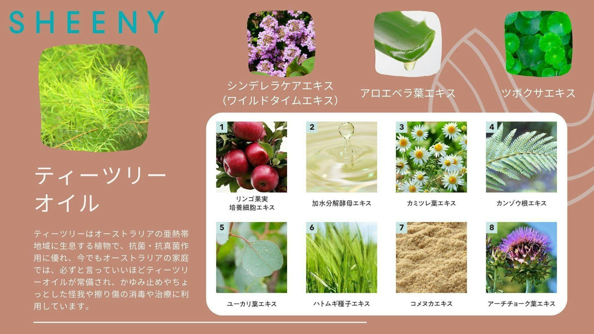 ※ポイント: 肌荒れに優しいティーツリー葉油を配合しました。