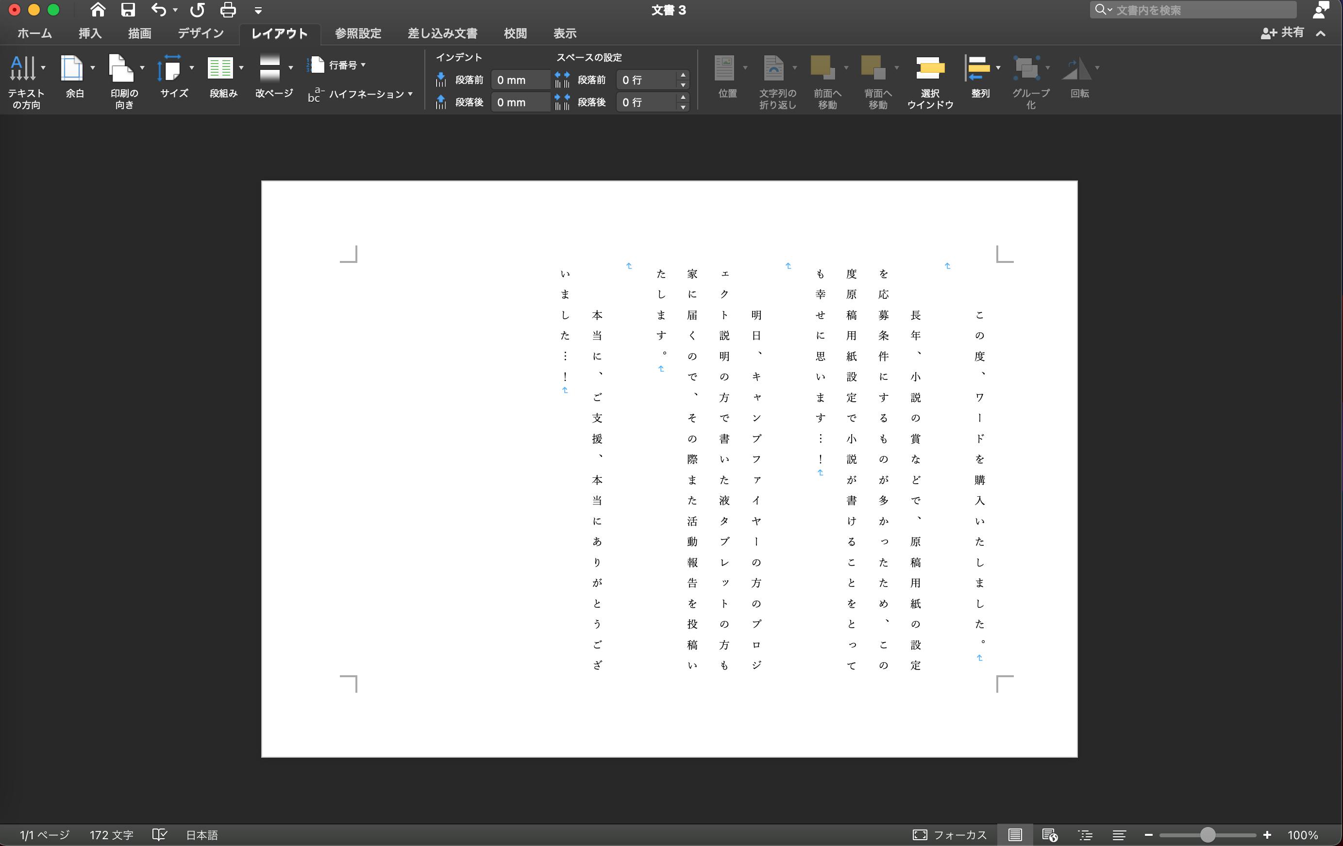 みなさまのおかげで購入することができたWordを使ってじゃんじゃん文字数や文字配置設定などを気にせず、いろんな賞に応募することができるようになりました…!