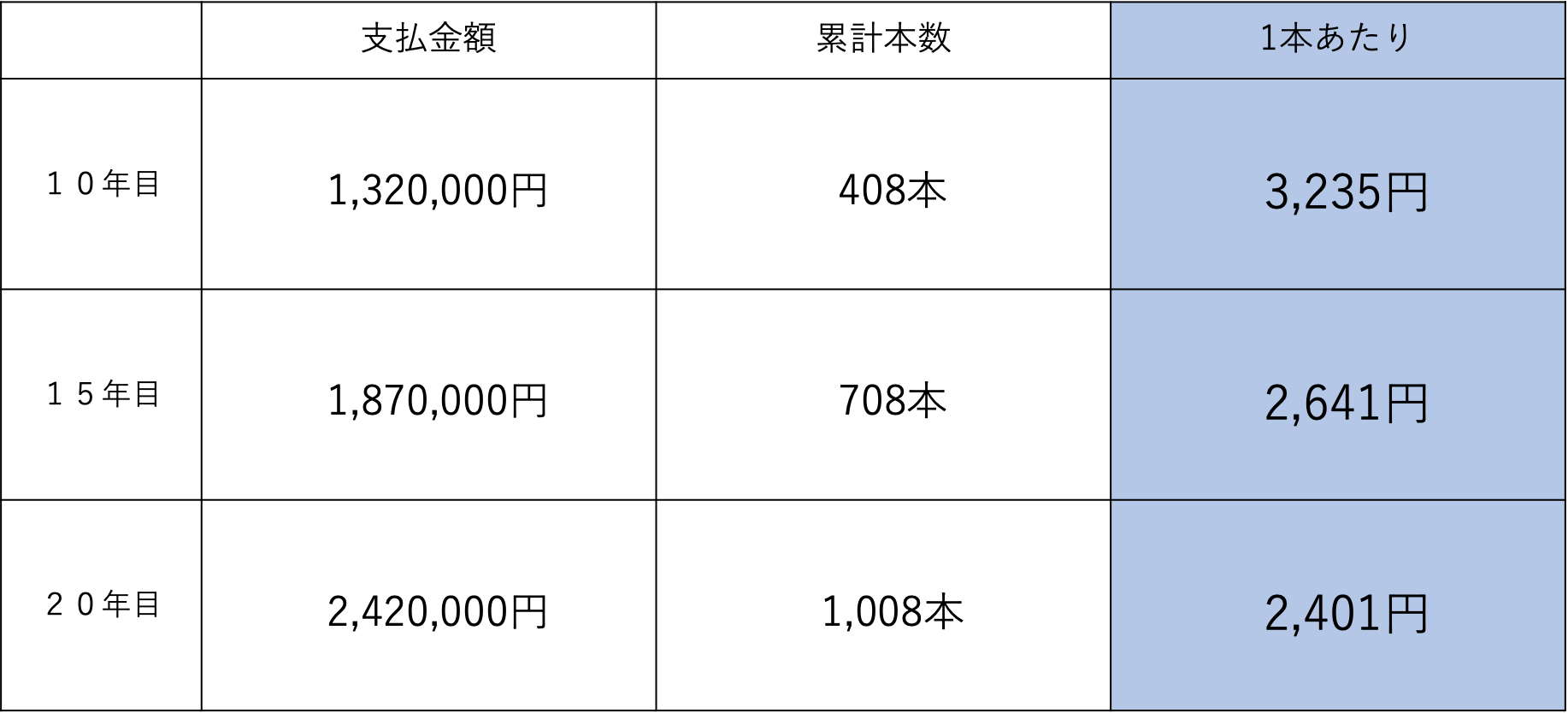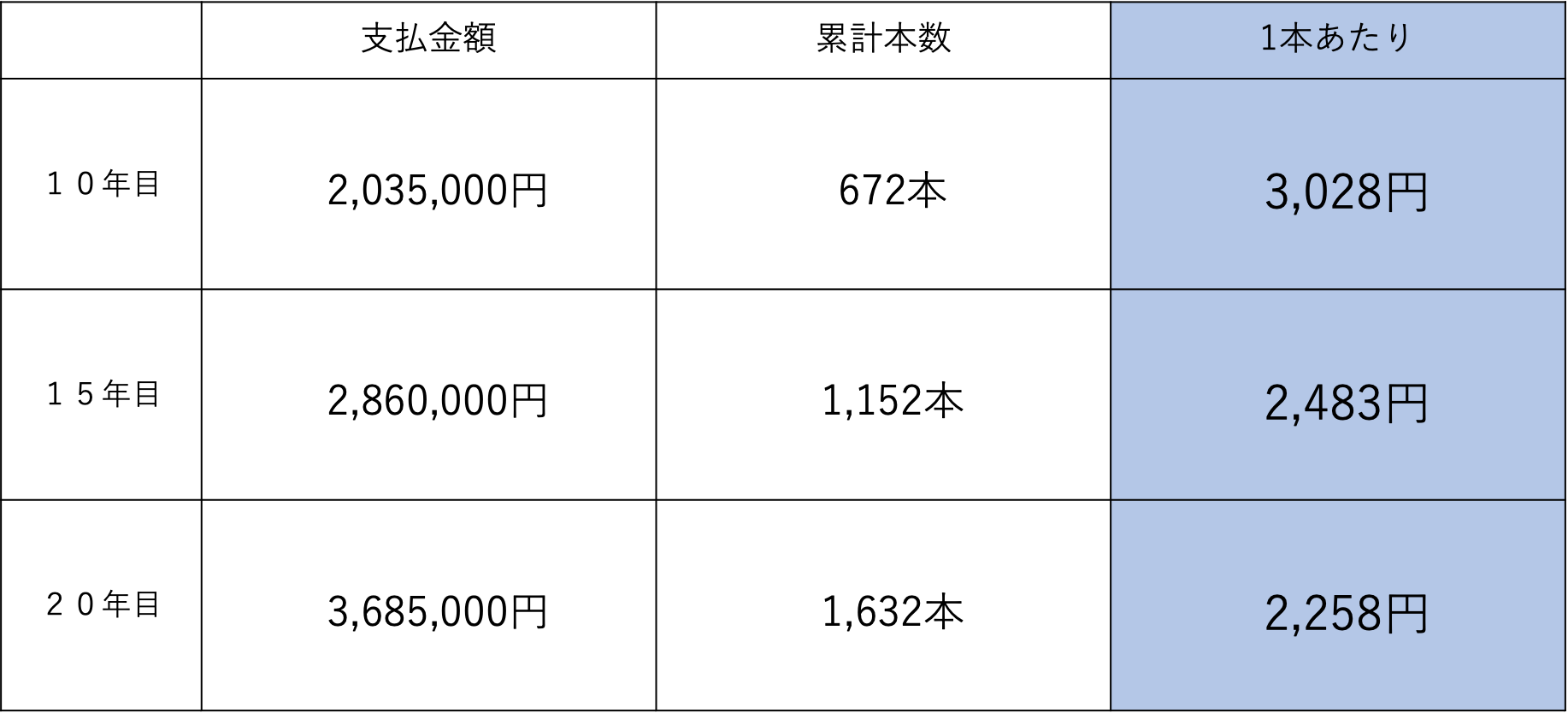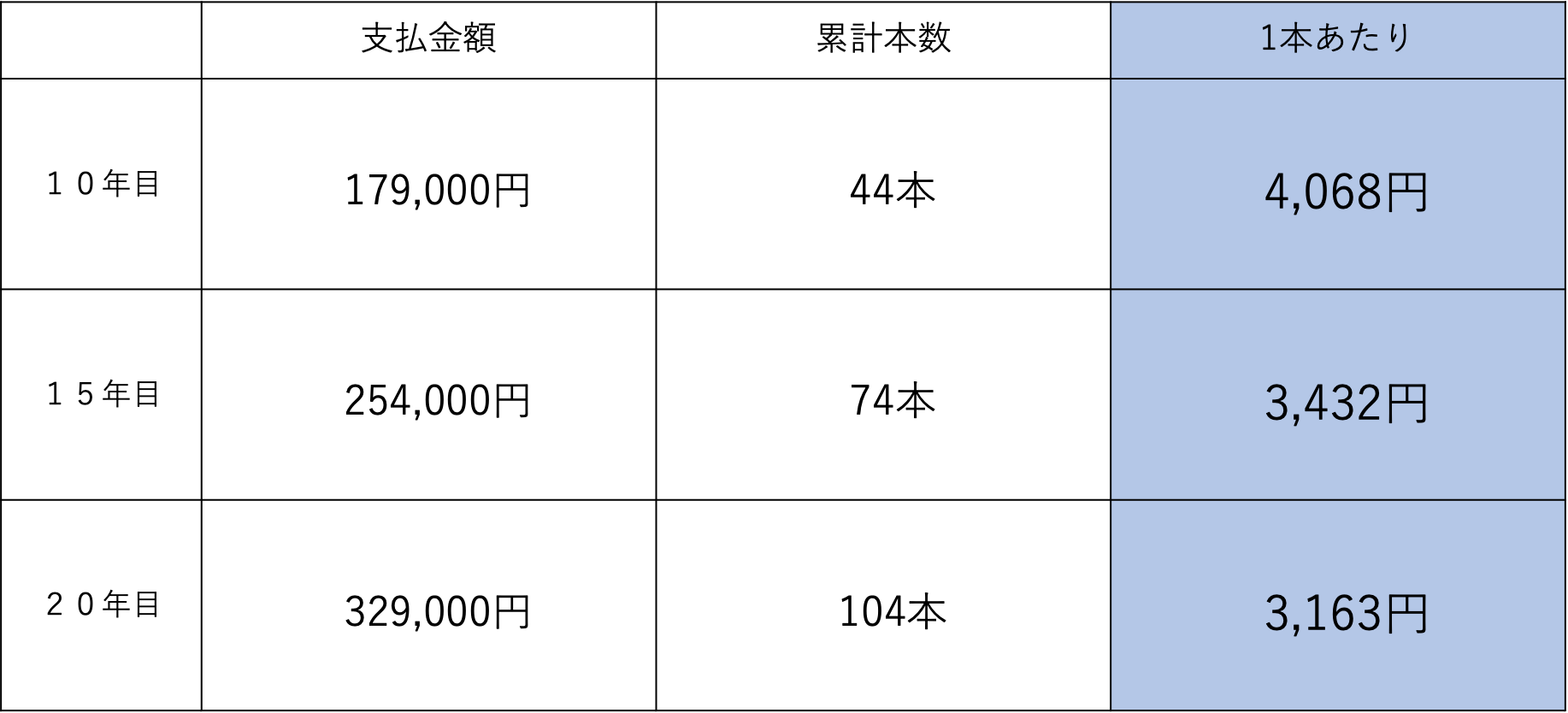 *1年目から4年目までは2本、5年目からは6本で計算しています。