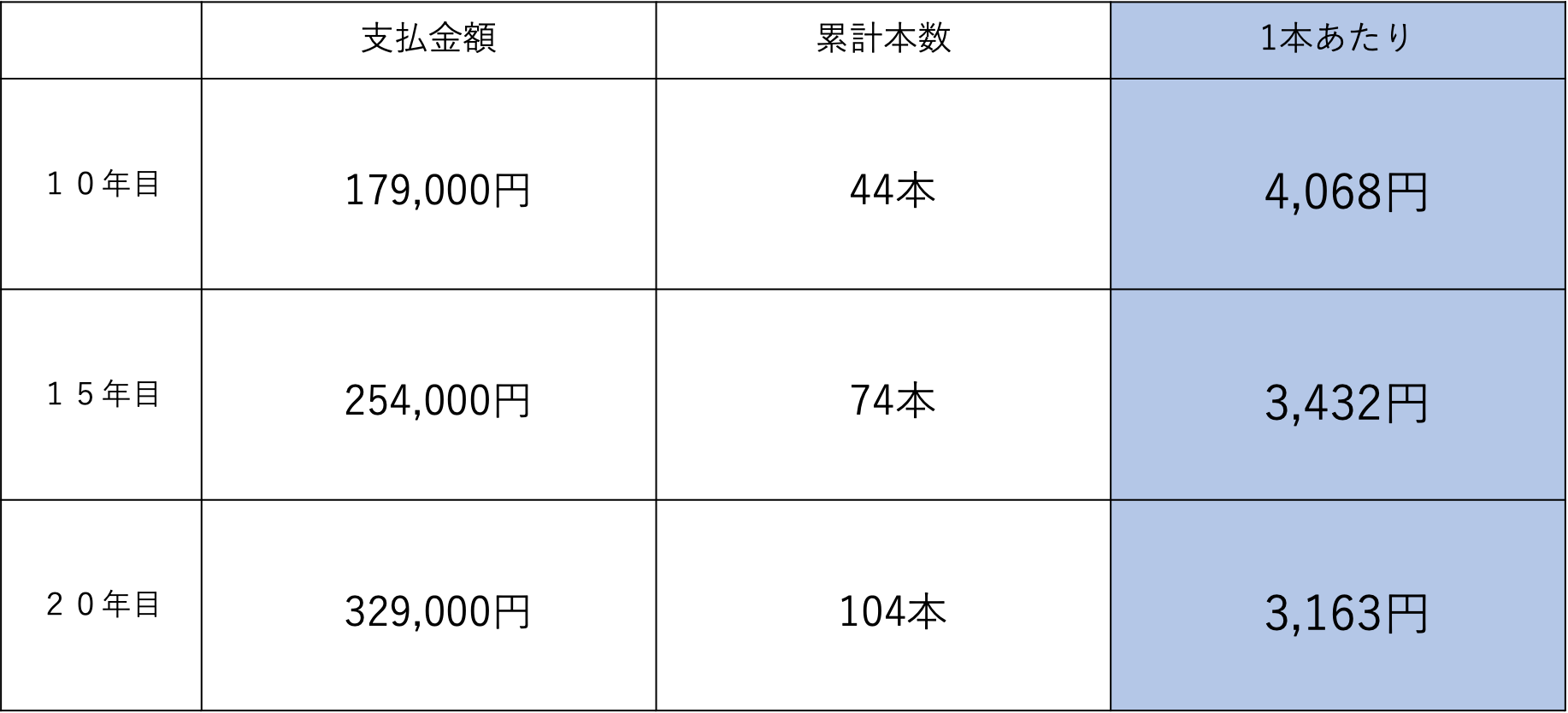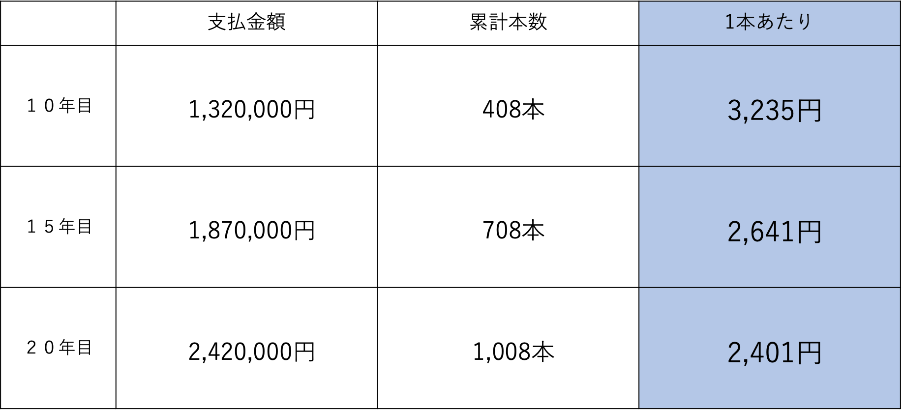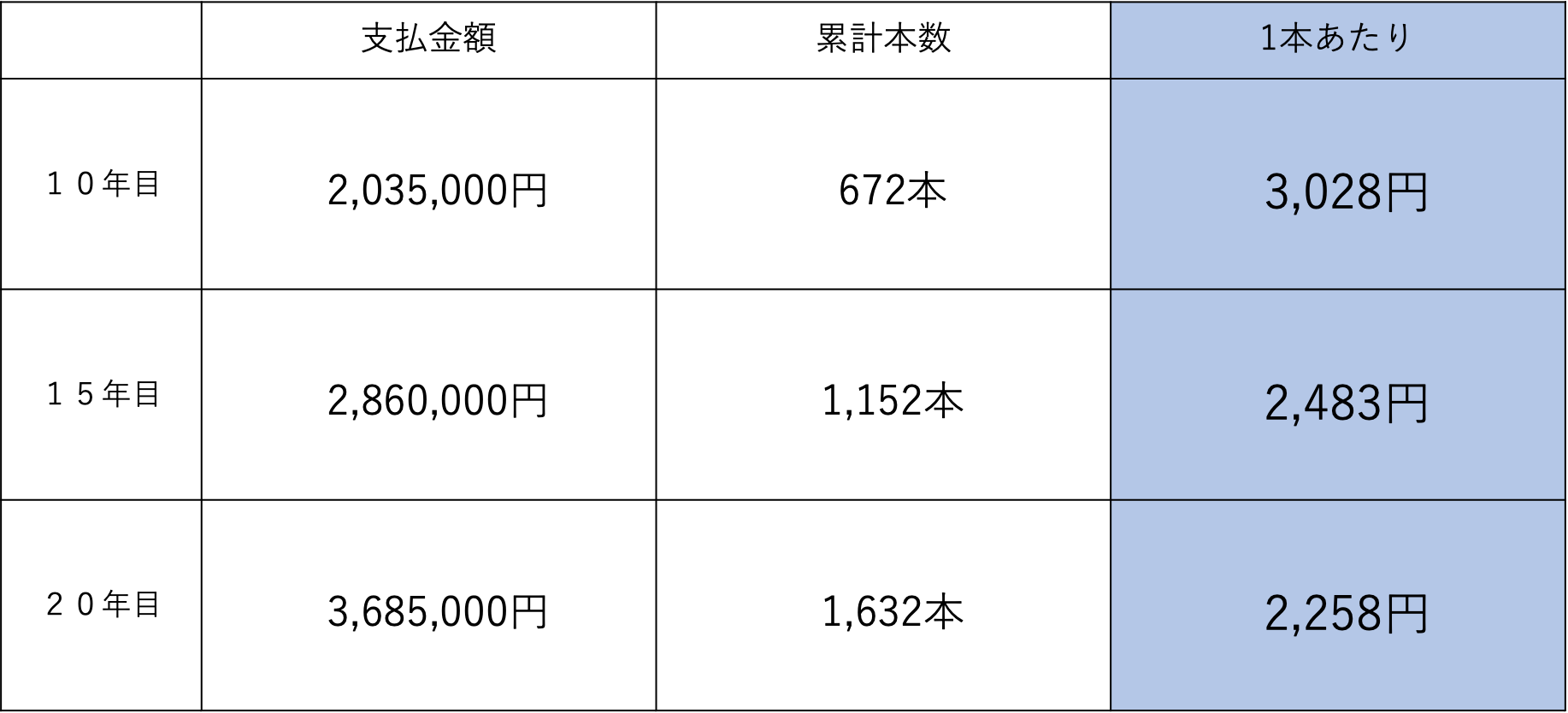 《翌年度から》 ※1本に対して