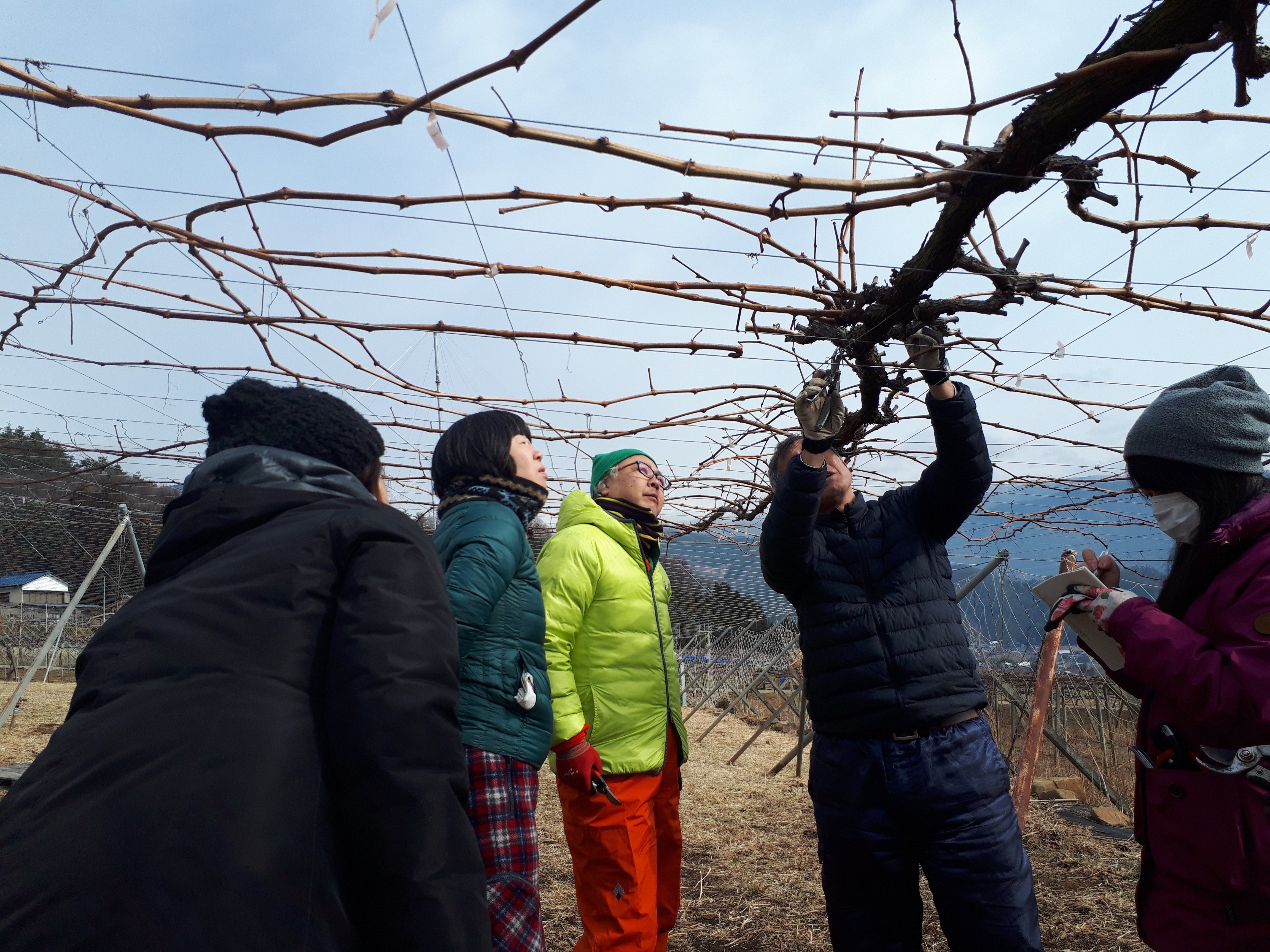 ブドウの選定作業。いらない枝を切除し春の芽吹きに備える。