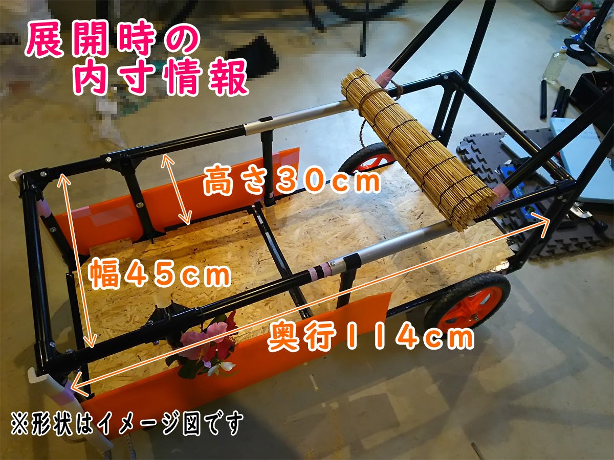 展開時の内寸:奥行114cm x 幅45cm x 高さ30cm