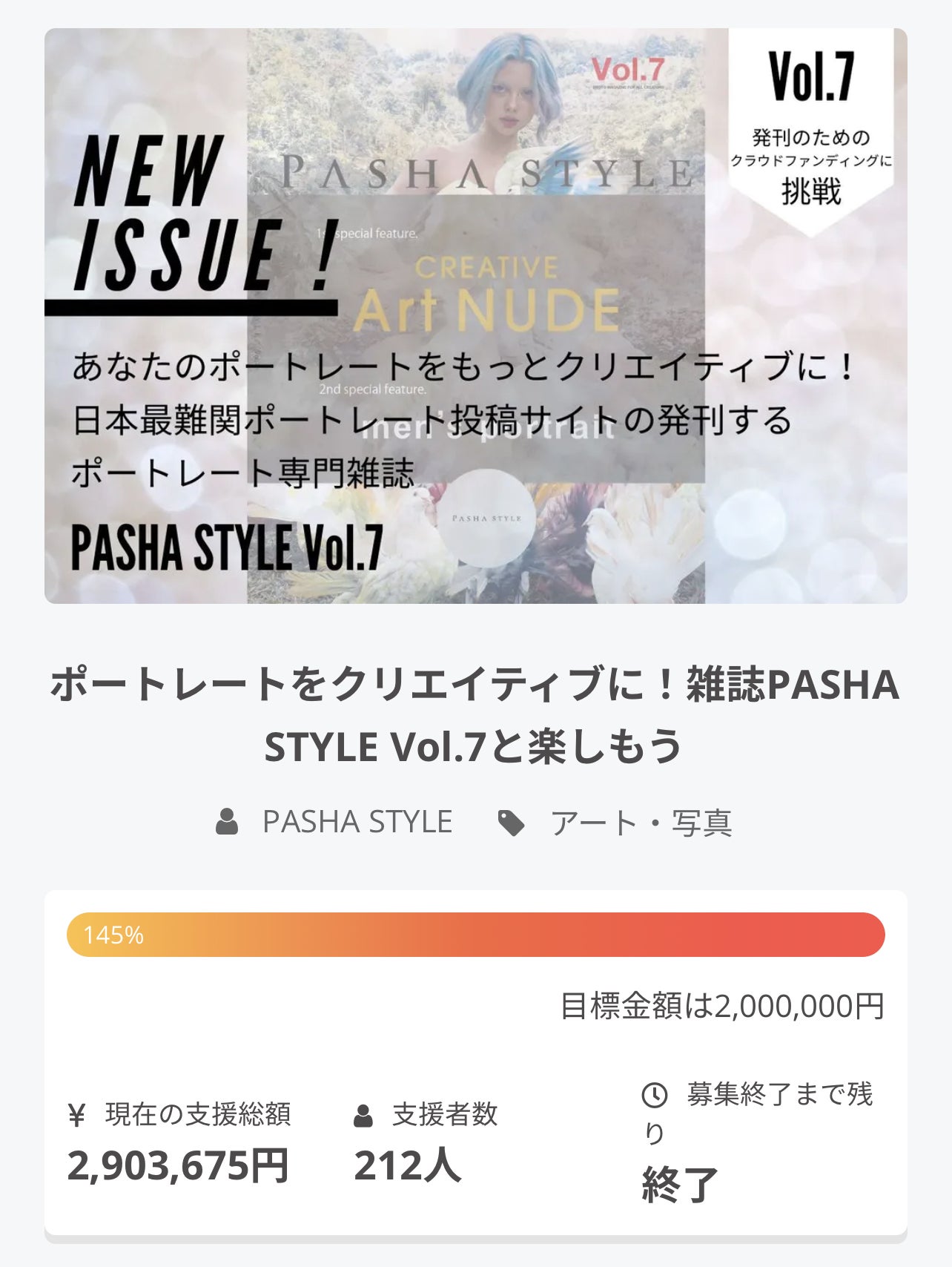PASHA STYLE Vol.7 の発刊、それに関する制作費を集めることが今回の目的です。