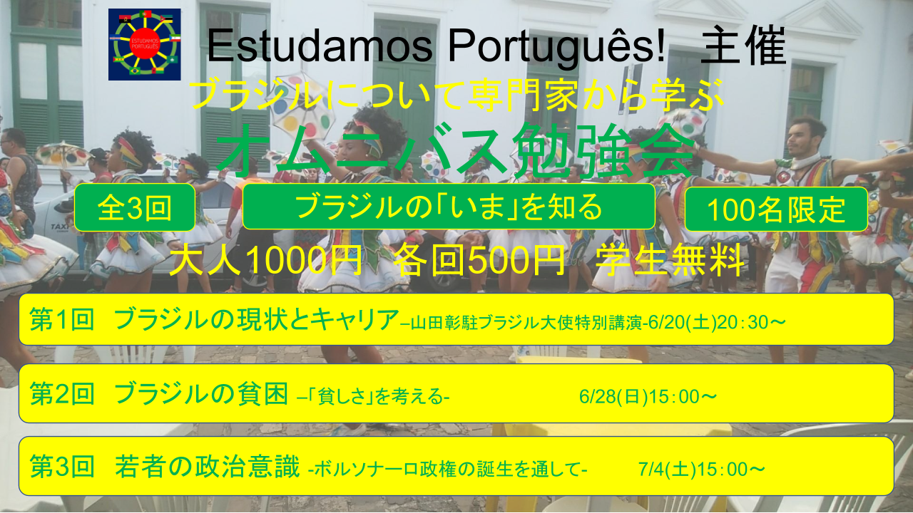 残念ながら昨年度、直接人を集めるイベントの開催が難しくなってしまいましたが、オンライン会議アプリを活用し、ブラジルについて各方面の専門家から学ぶ全3回のオムニバス勉強会を開催させていただくことができました!
