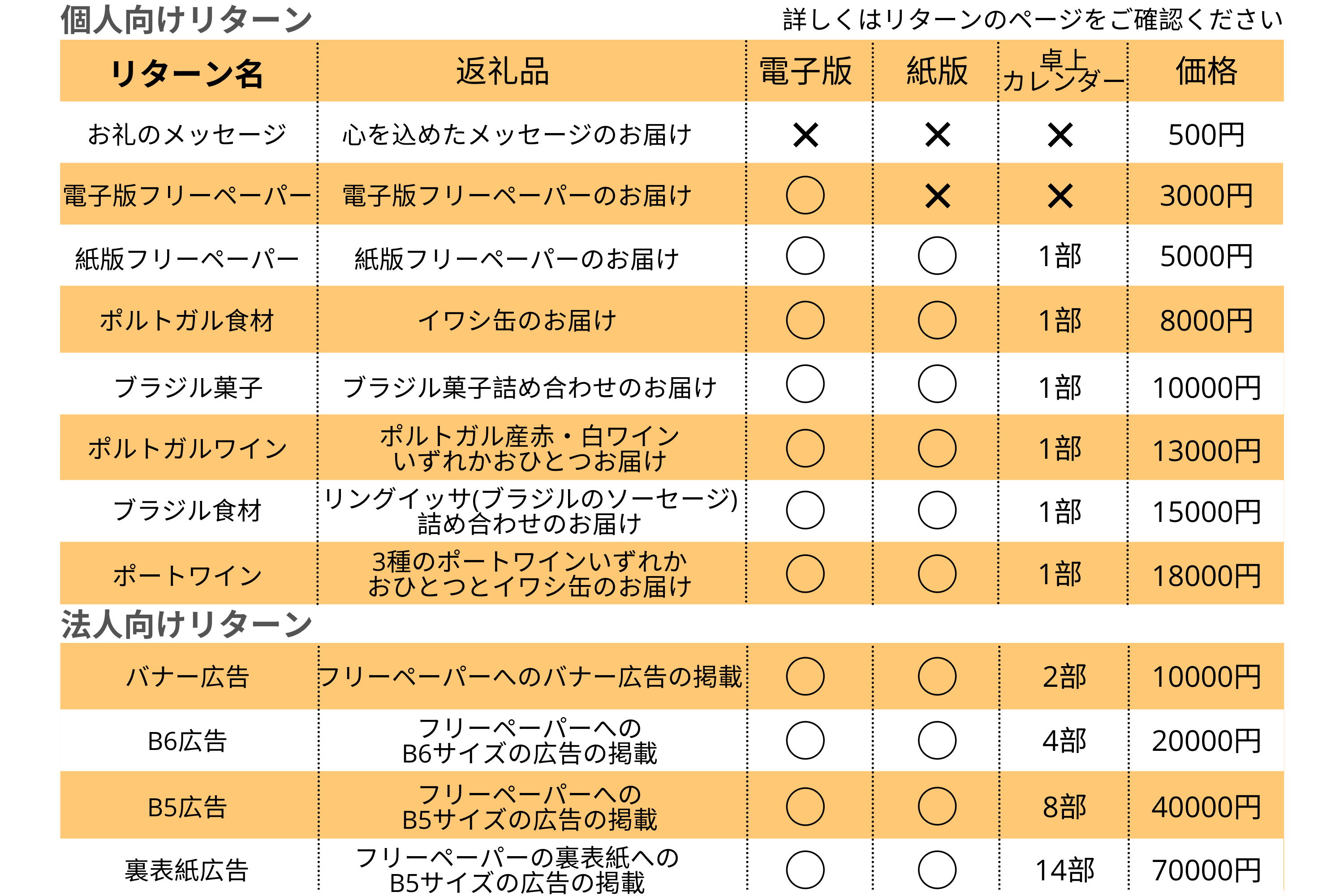 各リターンの詳細についてはリターンのページにありますので、あわせてご確認ください。