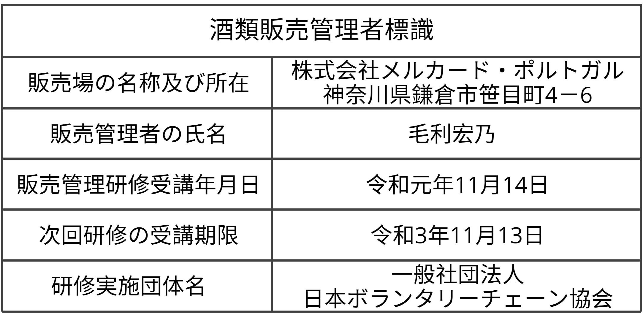 様の協力で実施させていただきます。酒類販売免許番号・管理者標識・は以下の通りです。