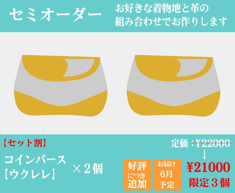 ご好評いただき売り切れになっていた【コインパースのセミオーダー×2個】を3セット追加しました。