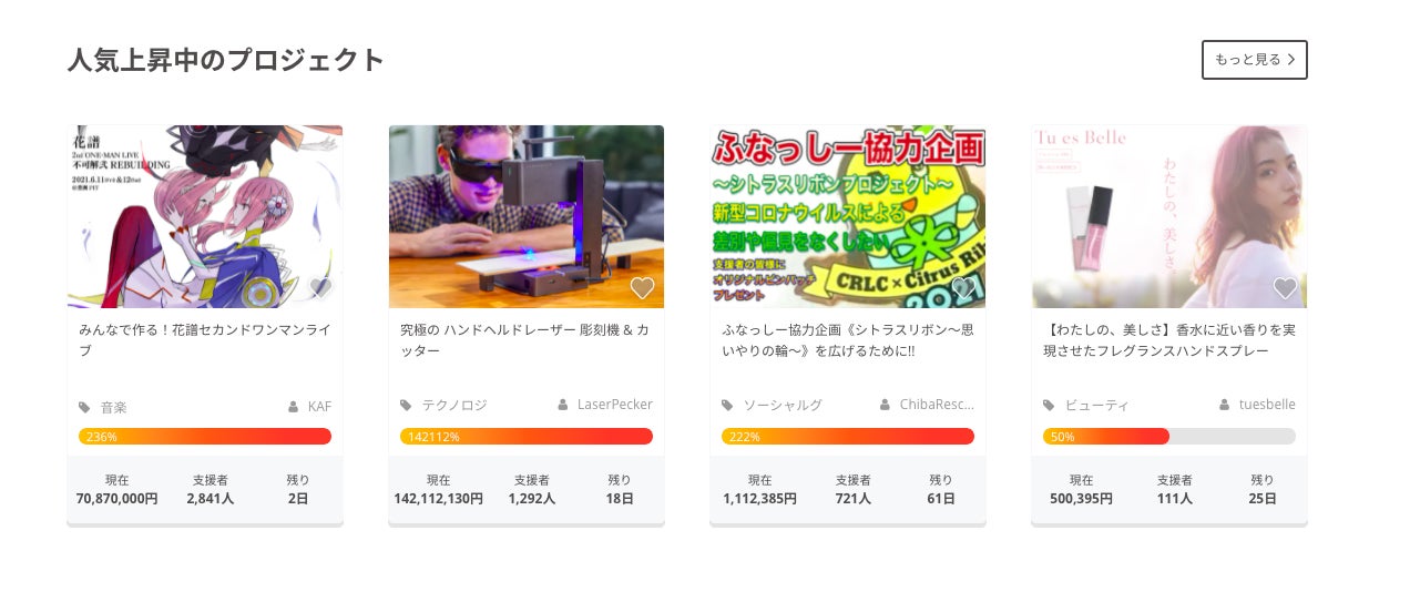 目標金額50%達成&急上昇中のプロジェクト欄に載りました!!