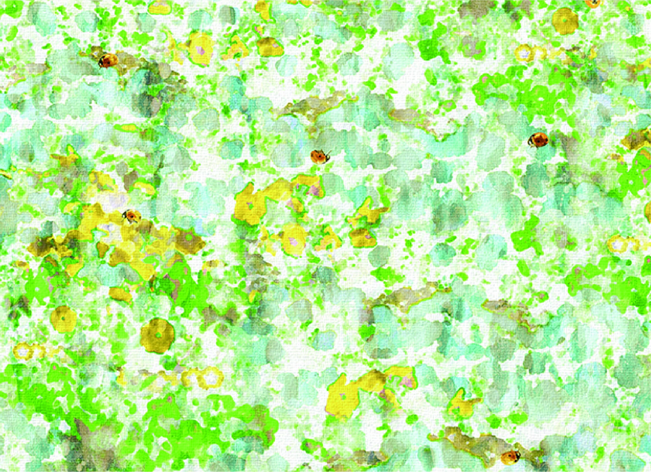 ゆらゆらと揺れている花や葉は、水の中の花畑を表現しています。てんとう虫などの昆虫もその世界に魅了され集まってきているイメージをデザインしています。