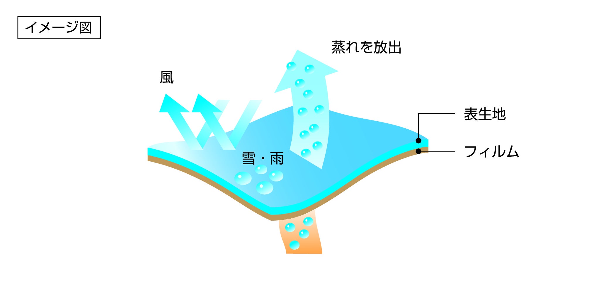 ・非常に薄くソフトな風合いながら、外部からの水・風を完全シャットアウト