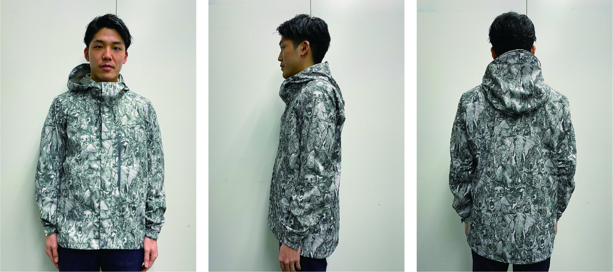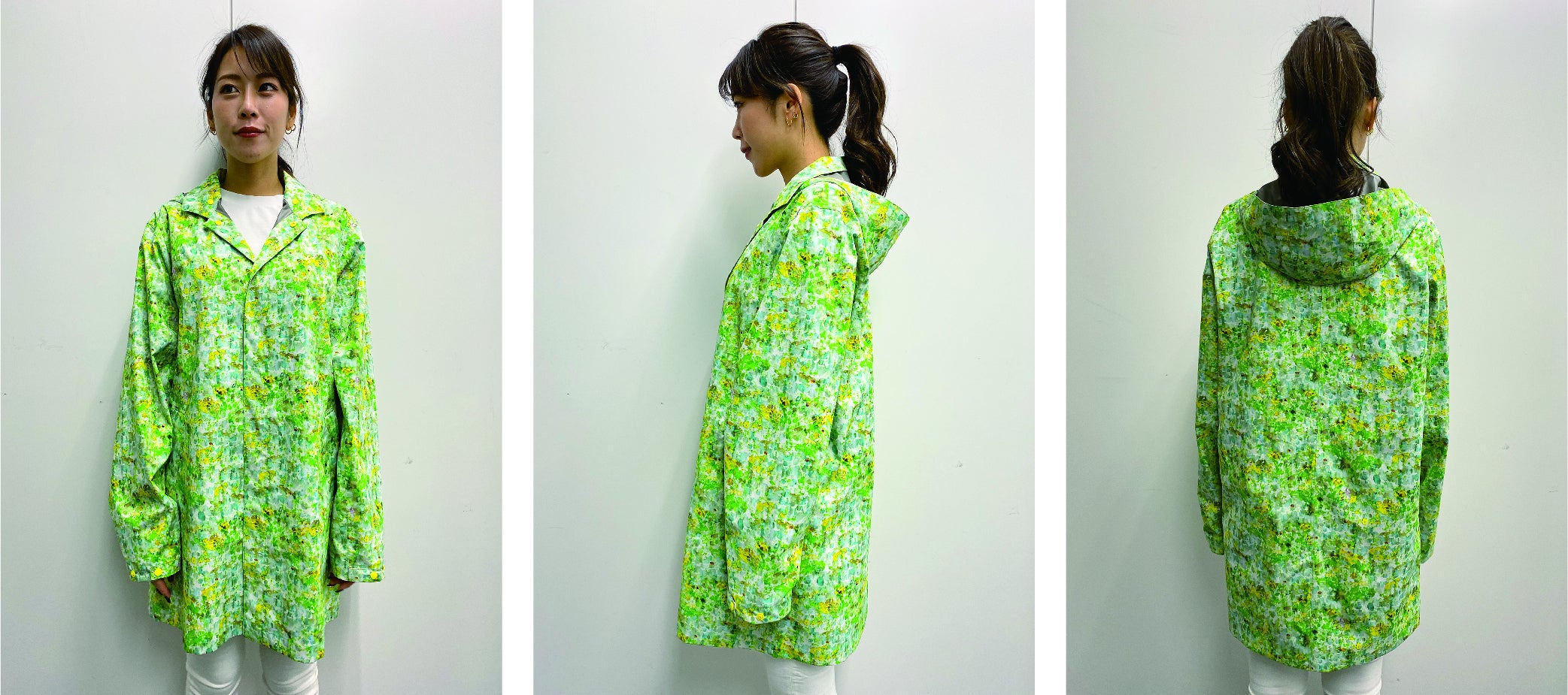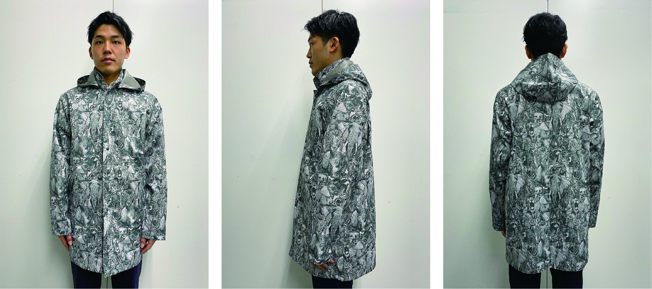 世界でも有数の「生地・製品から再生する技術」で作られた再生ポリエステル素材RENU®︎に、メッセージ・世界観を前面に出したnowartt Piece of The EARTHのテキスタイルデザインを乗せ、テックワン(石川県)の最高級品質の特殊フィルム・加工で防水性・透湿性・撥水性を極限まで引き上げ、匠の技術が継承されるオンヨネ(新潟県)の工場で縫製という、環境配慮、デザイン、高機能、伝統技術の要素をふんだんに盛り込んだ本格レインウェアを開発しました。レインウェアとしての機能を兼ね備えていることはもちろんのこと、ファッションとしてのタウンユースやアウトドア向けにも最適な逸品です。
