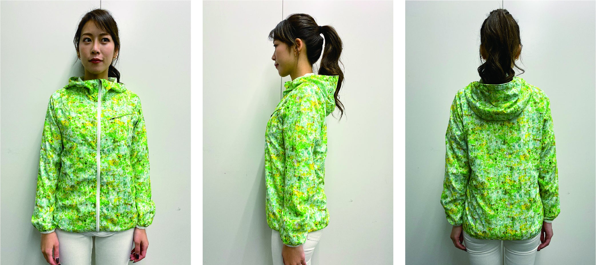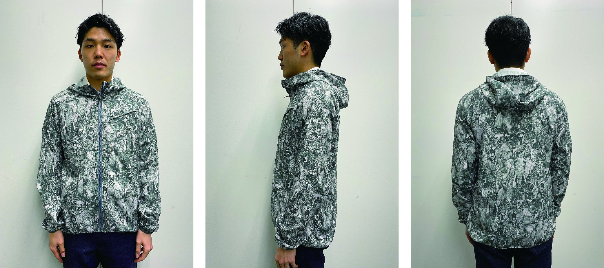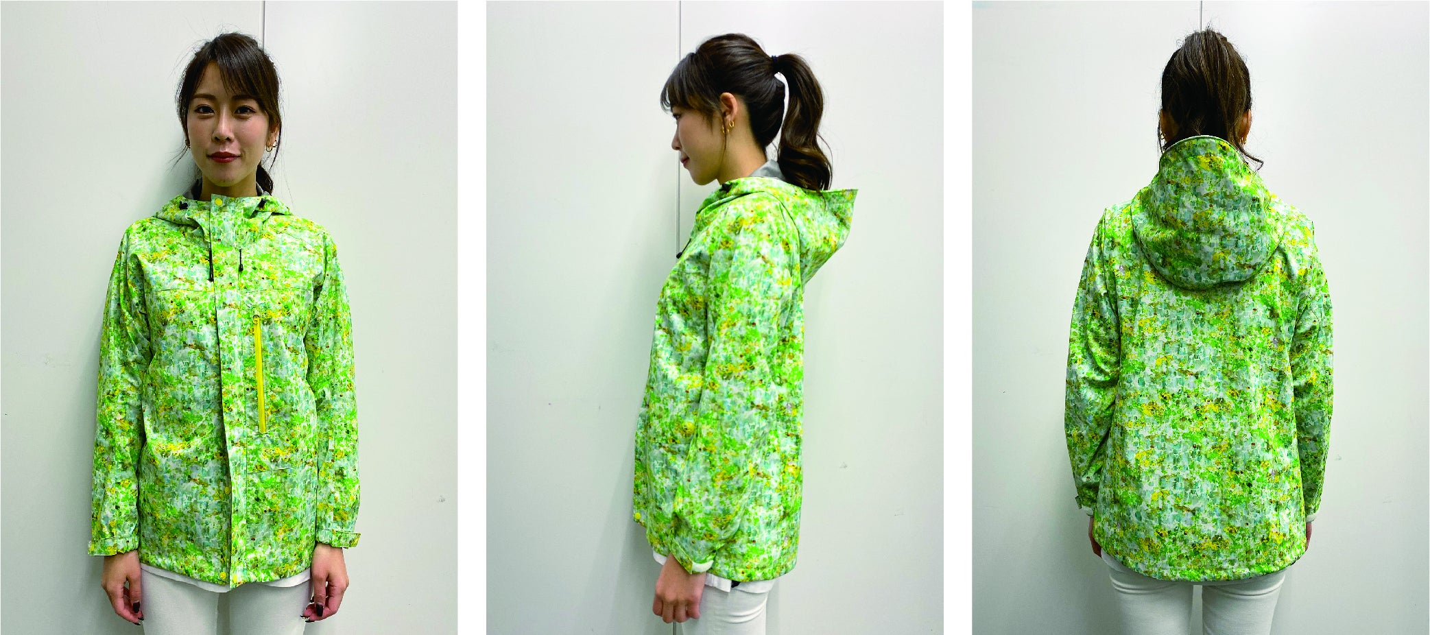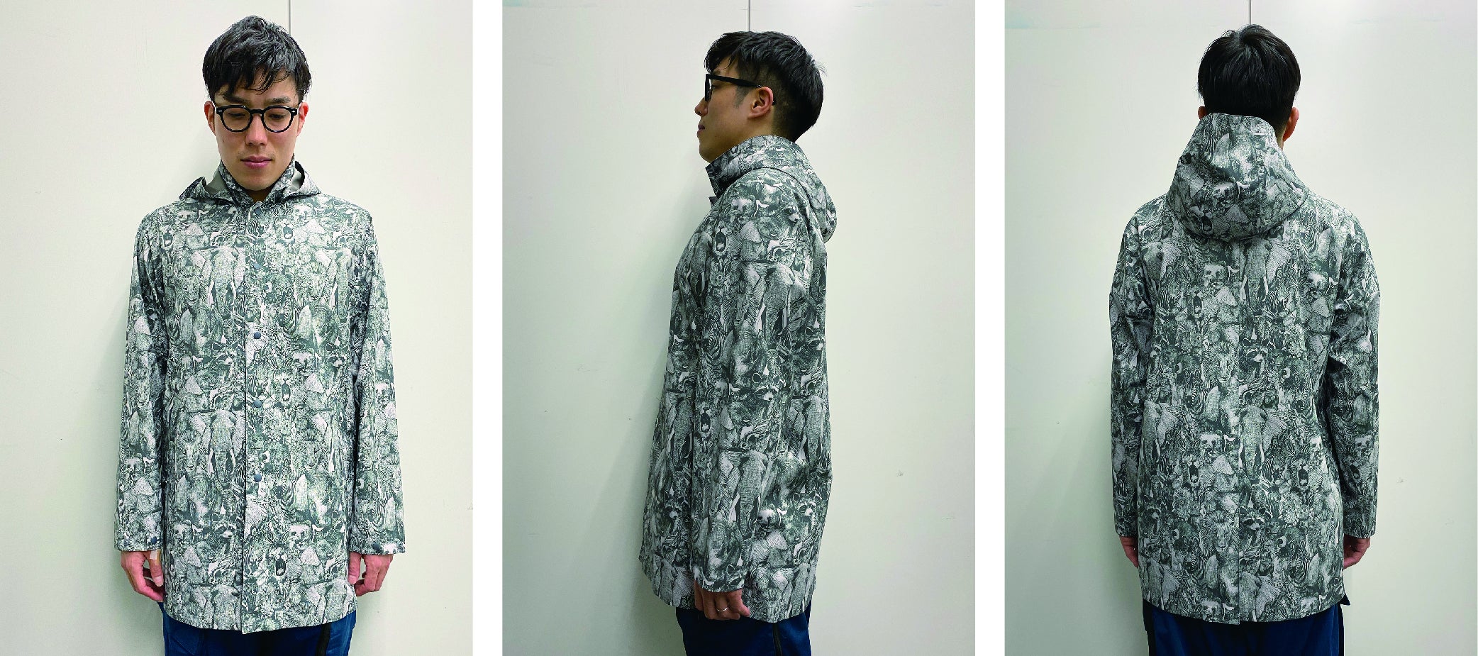 世界でも有数の「生地・製品から再生する技術」で作られた再生ポリエステル素材RENU®︎に、メッセージ・世界観を前面に出したnowartt Piece of The EARTHのテキスタイルデザインを乗せ、テックワン(石川県)の最高級品質の特殊フィルム・加工で防水性・透湿性・撥水性を極限まで引き上げ、匠の技術が継承されるオンヨネ(新潟県)の工場で縫製という、環境配慮、デザイン、高機能、伝統技術の要素をふんだんに盛り込んだ本格レインウェアを開発しました。レインウェアとしての機能を兼ね備えていることはもちろんのこと、ファッションとしてのタウンユースやアウトドア向けにも最適な逸品です。