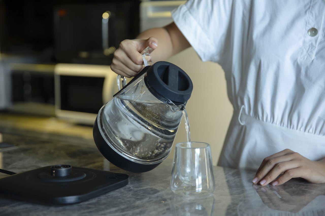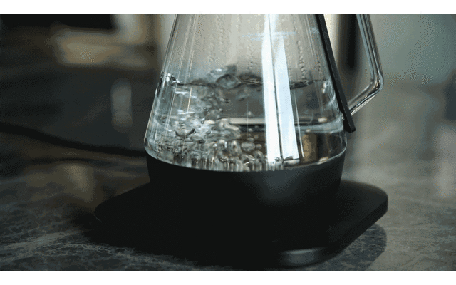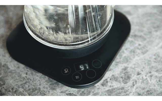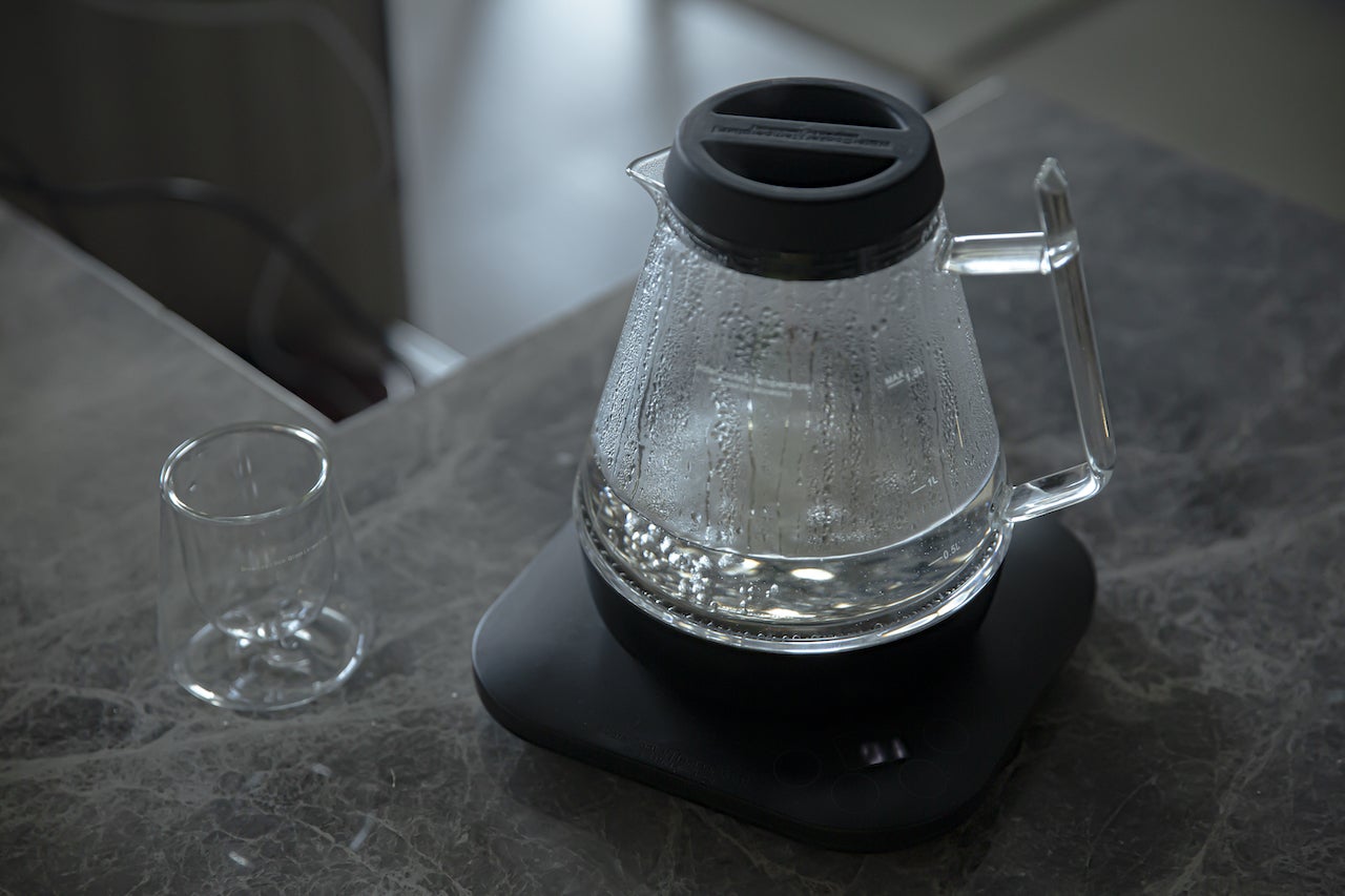 さらにガラス製ケトル本体は沸騰時でも金属製ケトルほど熱くならずリビングに置いても安全です。