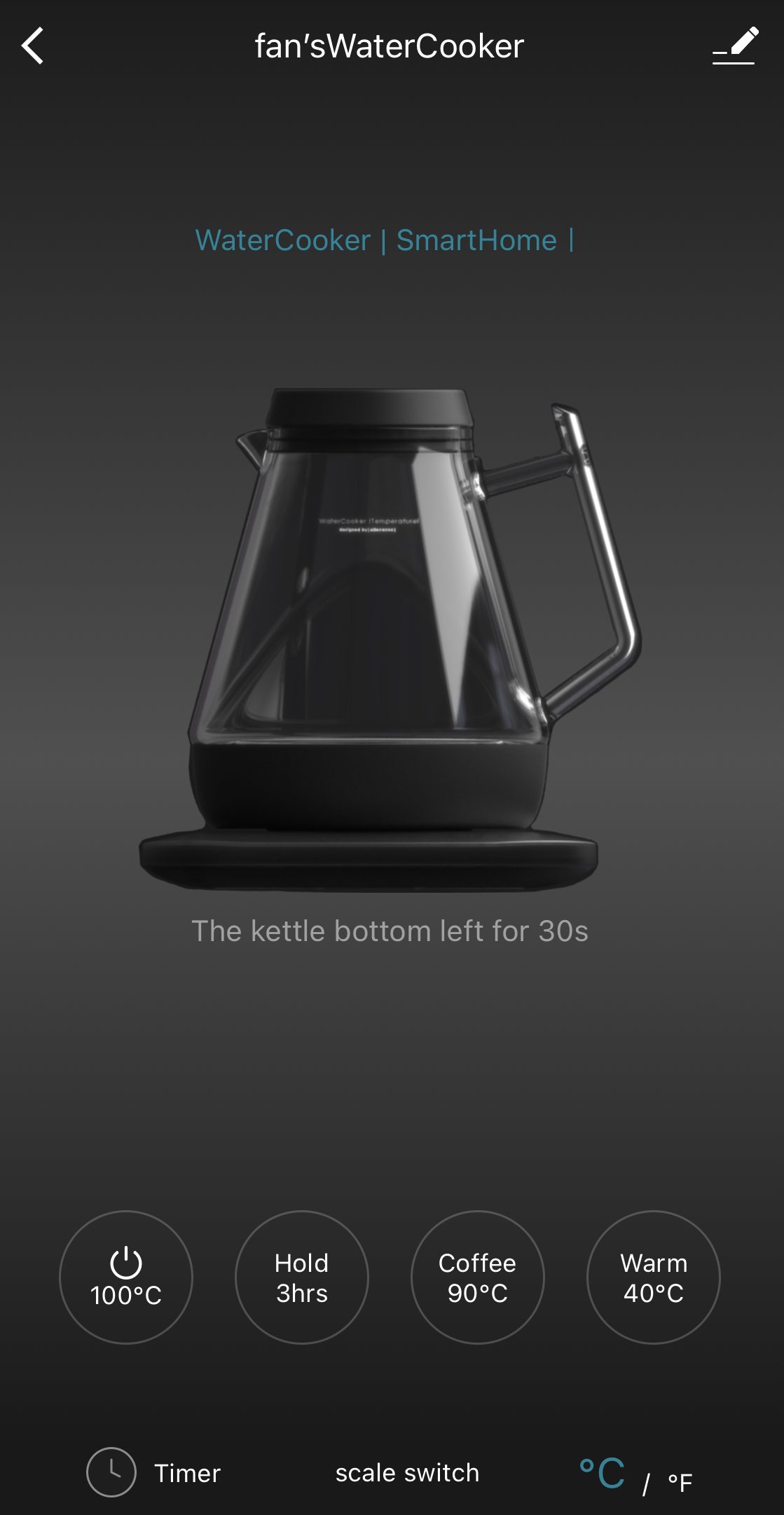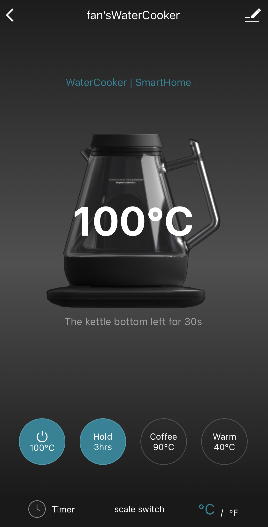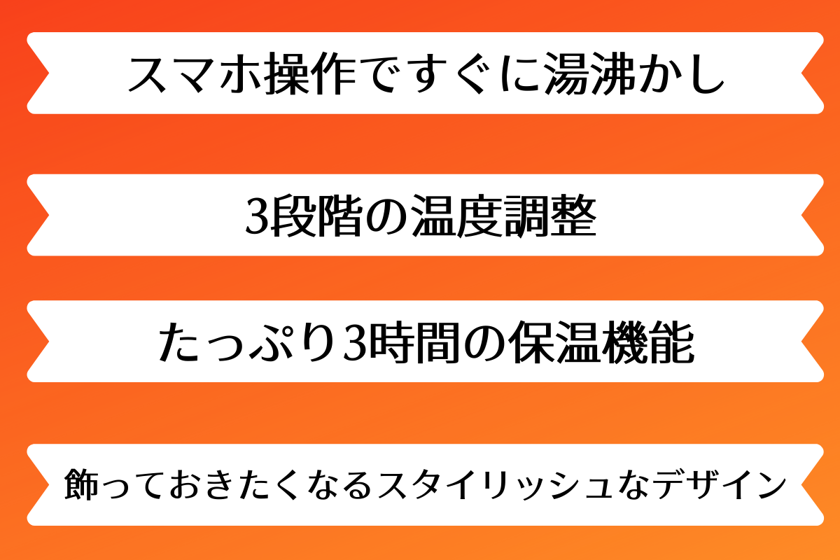 しかしWaterCookerはただお湯を沸かすだけでなく、スマホで遠隔操作、3段階の温度調整、保温、タイマーと様々な機能があります。