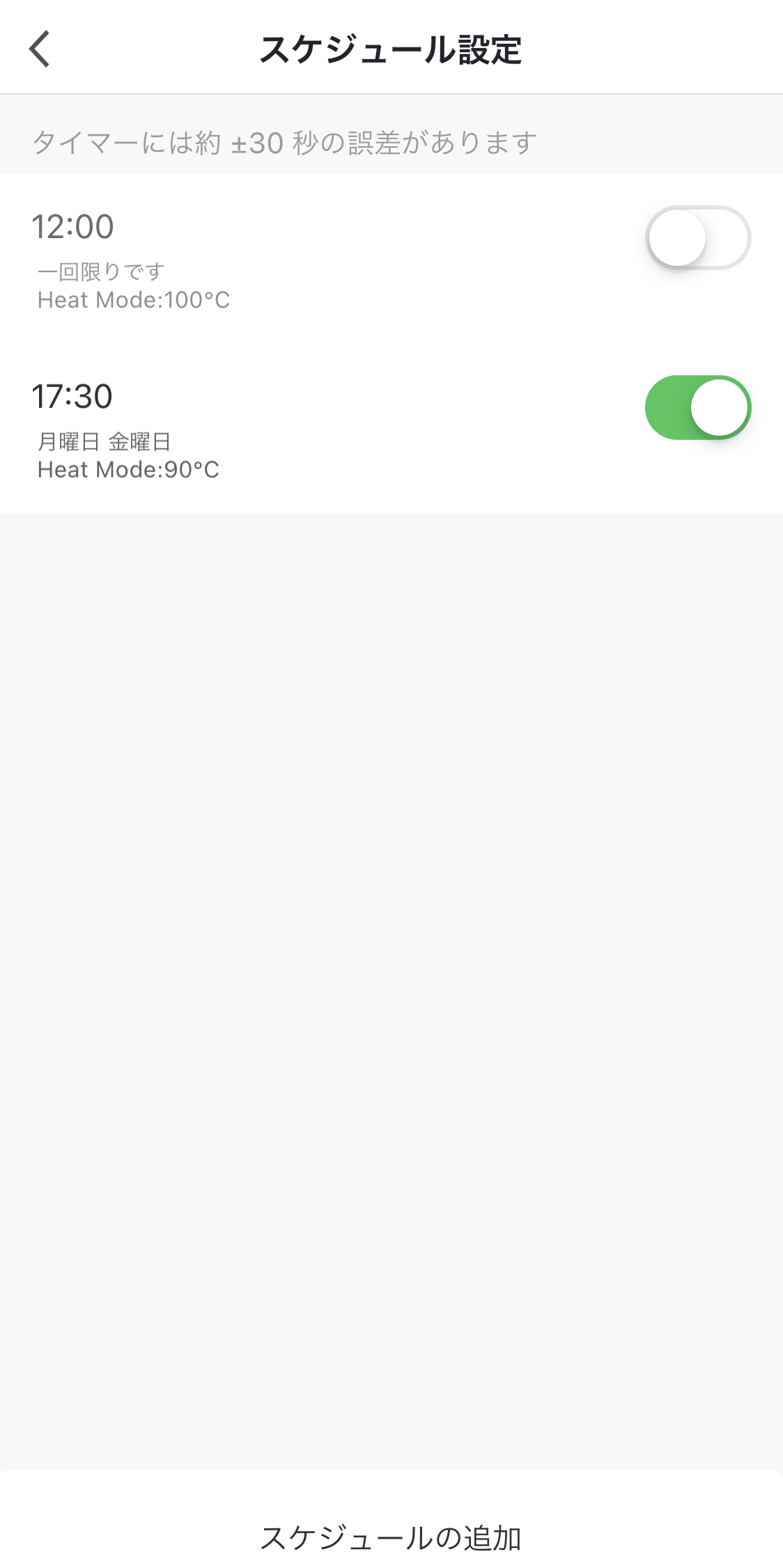 そんな時に便利なのがタイマーモードです。あらかじめお湯を使いたい時間をセットしておけば、スマホ操作すら不要で湯沸かしを行ってくれます。