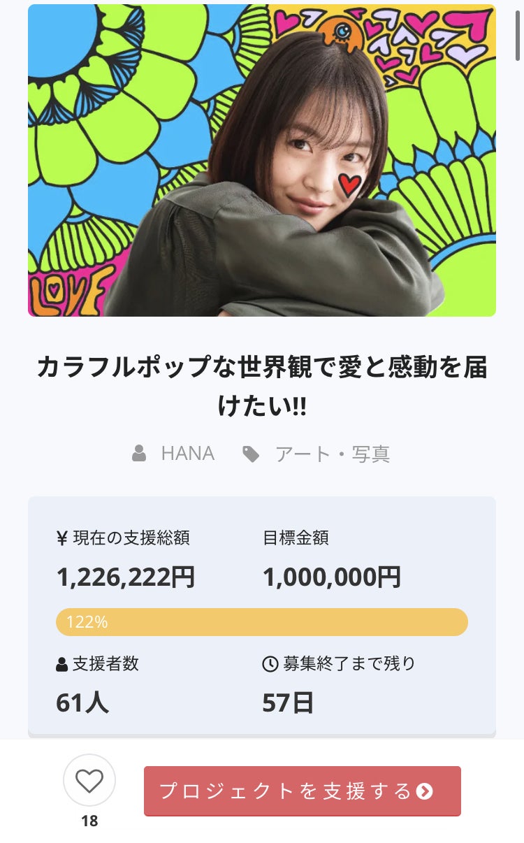 こんにちは。夢実現に向けてクラファンに挑戦することは、私にとってはすごく勇気がいることでした。夢を語ったら"お前には無理だ!!できない!"と言われトラウマを抱えた幼少期の過去から脱することができたのも、勇気を持って夢を語り続けたことで共感者や理解者に出会えたからです。辛いこと悲しいこと苦しいことそれだけが、人生ではないことをたくさんの方々の生き様から教えて頂きました。『私と出会ってくださった皆さま、ありがとうございます。』夢を語る上で具現化する為にも、必要なお金や情報や人とのご縁などどう繋いでいくのか日々自分と向き合い"自分はどうしたいのか?"を味わい、今日まで来ました。そして毎分毎秒が過去になっている今をどのように紡いだら“人の笑顔に繋がるのか?”いつも考え、それを実行することが私の幸せでもあり、毎朝、新鮮な気持ちで目覚めることができる喜びを経験させて頂いています。皆さまの温かいご支援のお陰で、目標金額を大きく上回っております。本当にありがとうございます!!更に皆さまに喜んで頂けるような個展やZINEのクオリティをあげるために、クラファン終了3/31 23:59まであと数日ですが、私は全力を尽くし最後までやり抜きます。6/21スタートの個展において、私の描いた唯一無二のZINEの発表もさせて頂きます。楽しみに待っていて下さい。リターンにあるかわいいキャラのちゅうぼは、私の相棒でもあるオリジナルキャラクターです。ちゅうぼは、カラフルプラネットから地球のみんなを個性豊かにする為にやって来ました。ちゅうぼに触れることで、より幸せに皆さまがなれるように想いを込めて制作していきます。私は必ず喜びや幸せをもっともっとたくさんの方々にお届けしていきます。『どうか今一度、皆さまのお力添えをよろしくお願い致します!!』最後まで応援よろしくお願い致します!!英★Instagramにお礼&ガンバります動画を載せたので、是非ご覧下さい!↓↓↓𝕝𝕟𝕤𝕥𝕒𝕘𝕣𝕒𝕞