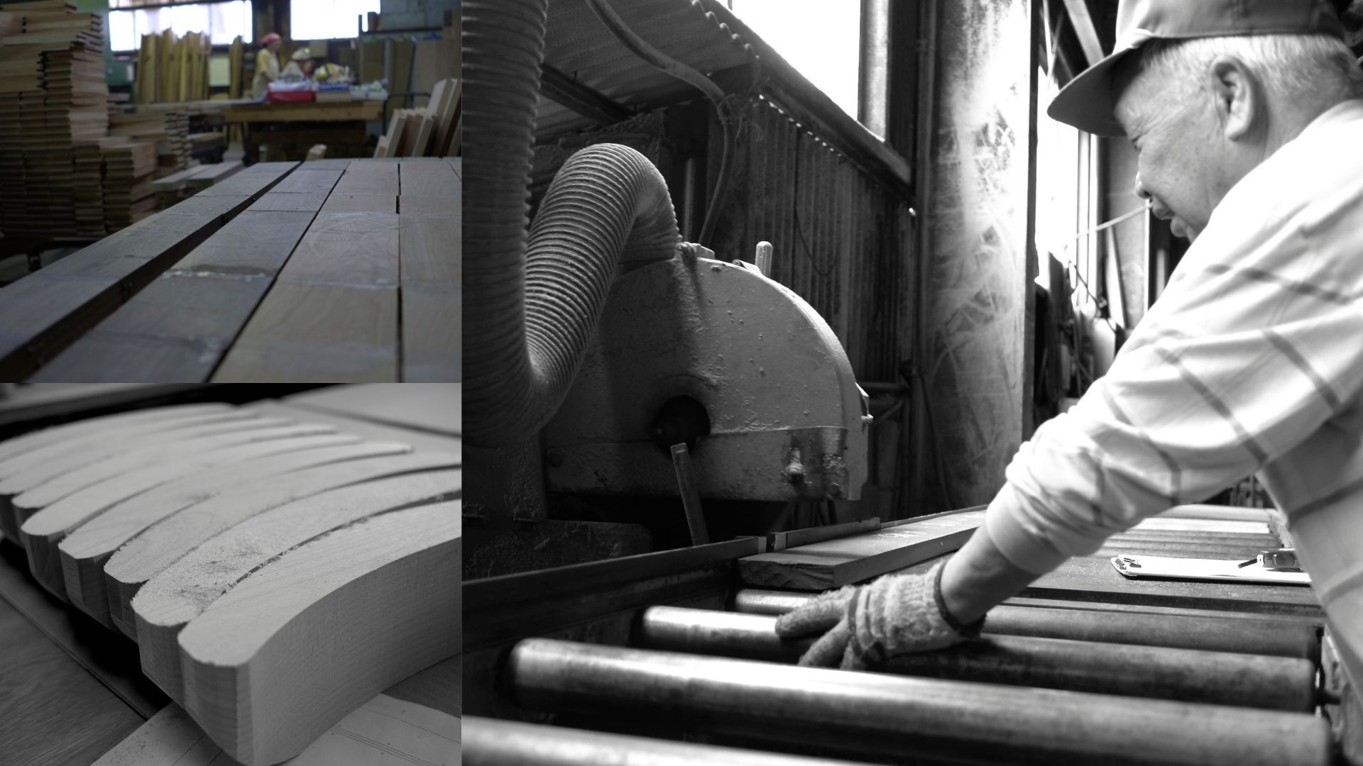 Trolley Deskに用いられているヒノキは、うきは市のヒノキ専門の製材所“栗田製材所”により製材・乾燥されたものとなっています。