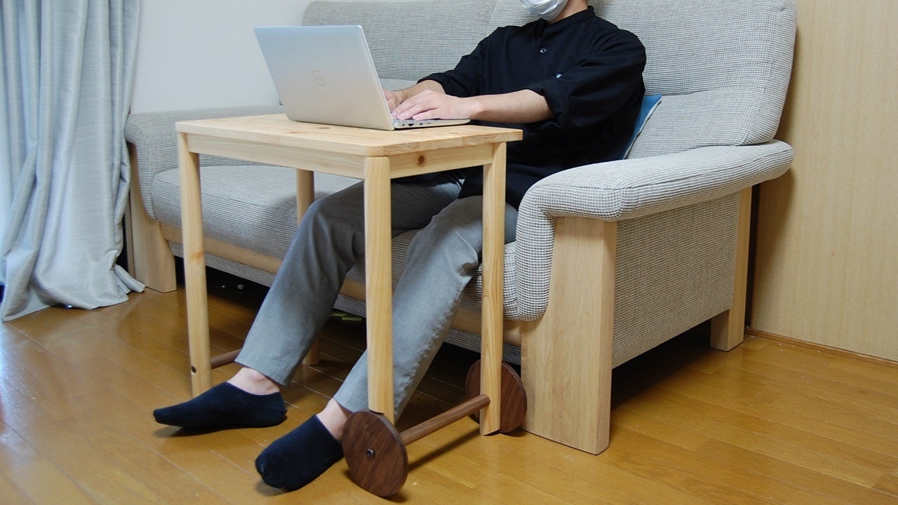 Trolley Deskは、ソファに座りながらのパソコン作業に最適です。