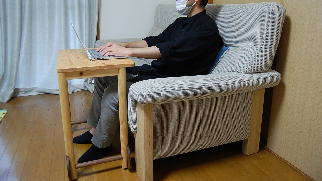 ソファのリラックス空間はそのままに、快適な作業を可能にします。