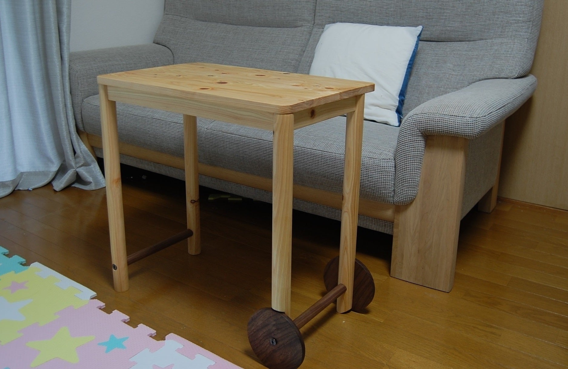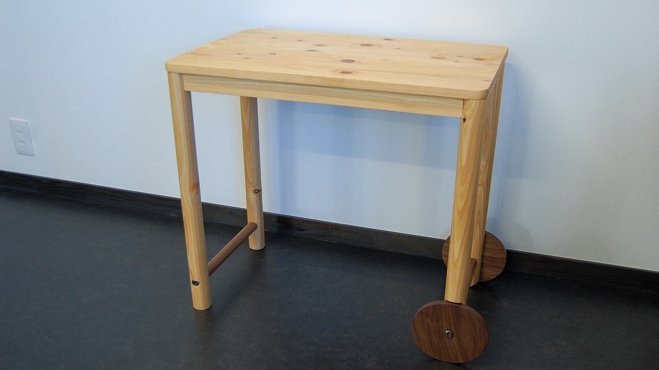 そこで、デザインのコンテストの開催、試作や打ち合わせを重ねることで、ヒノキの特徴を活かした思い入れのある「Trolley desk」が出来上がりました。