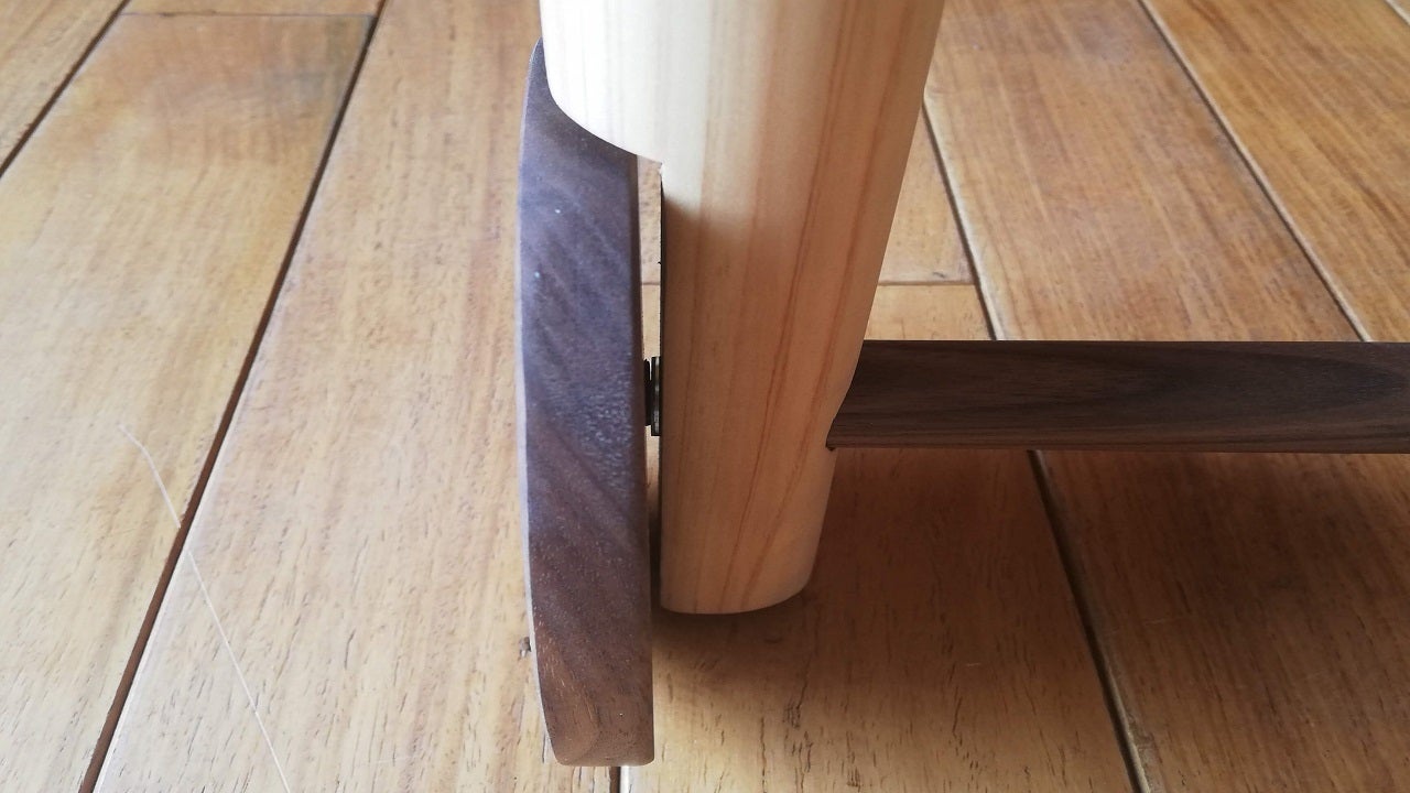 職人の工夫により、強度が必要な車輪部などに丈夫な木材であるウォールナットを起用することで弱点を克服、耐久性を確保しました。これは、外材広葉樹の加工を得意としており、ヒノキとの組み合わせのノウハウを持つ、井上企画ならではの発想です。