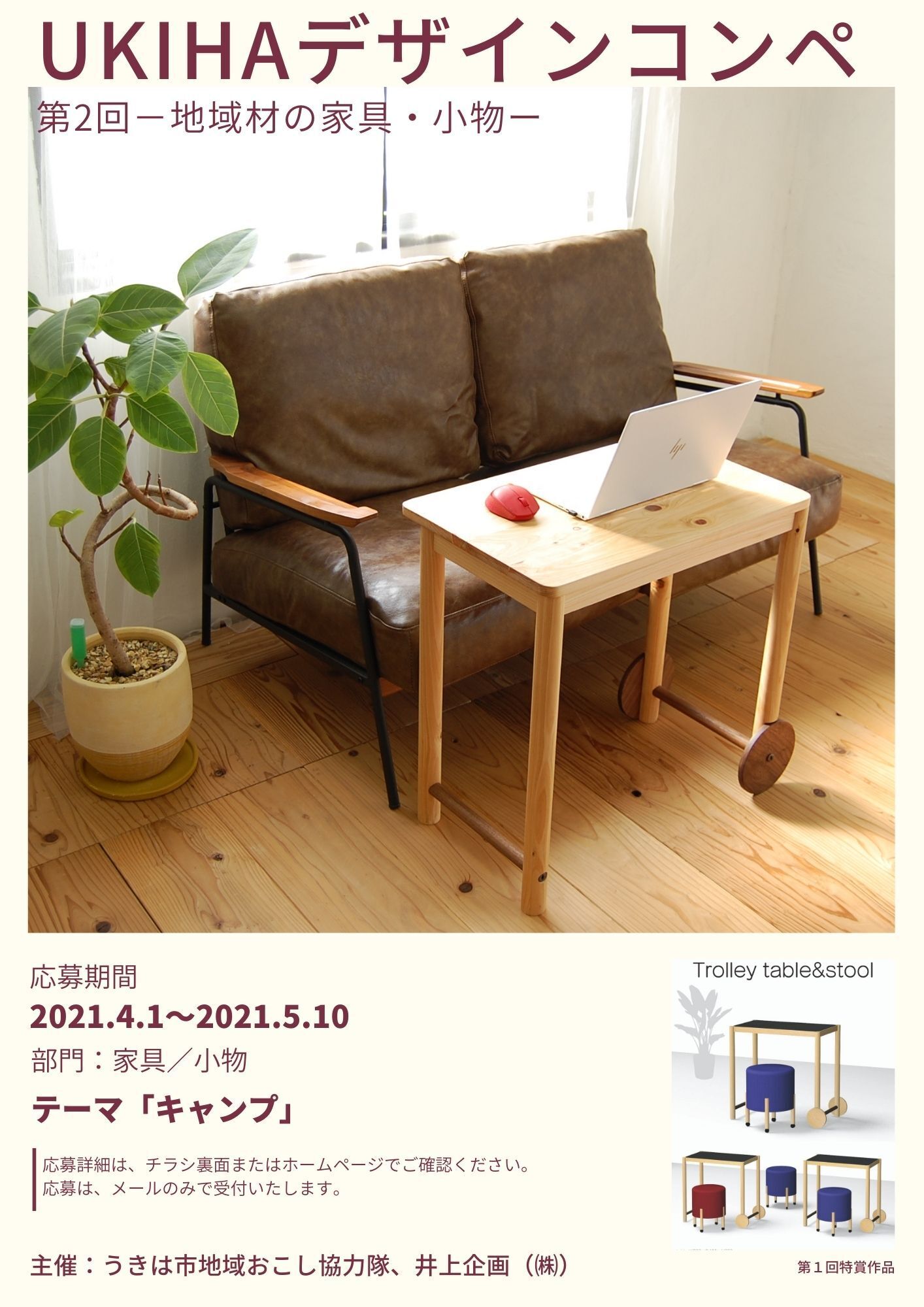 これは、スギ・ヒノキを活かした家具のデザインコンテストで、福岡県の“林業のまち”うきは市の地域おこし協力隊と“家具のまち”大川市の株式会社井上企画での協同開催により実現しました。