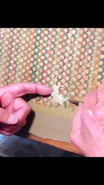 絵の欠けた部分に、絹布を当てていく作業です。剥落が激しい曼荼羅でしたので、絵の欠けた部分は数百か所、一つ一つ形も違います。