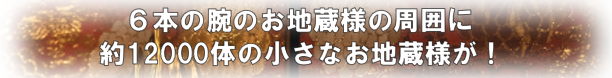 室町時代の作で、6本の手を持ったお地蔵様の周辺を約12000体の小さなお地蔵様が描かれた、今までに見たことのない曼荼羅です。日本で、世界で1枚しかない曼荼羅かも知れません!