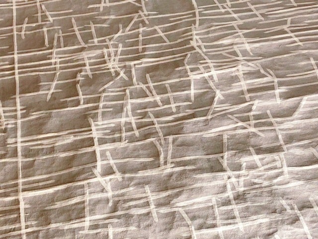 2021/05/17 14:57欠損部分の修復後は再び曼荼羅を裏返して、「折り伏せ」という作業にはいります。これは曼荼羅の折れ癖のついた部分を裏から薄い和紙で矯正する作業です。ちなみに写真の白い線に見える部分が「折り伏せ」を施された部分です。一部分の写真ですが曼荼羅全体では数千本、張り付けられていました!和紙の貼り付けは、修復士の藤本さんがお一人で、爪でなでるようにされているのですが、気が付けばいつのまにか爪がすり減ってなくなっていることもあるという作業だそうです!藤本さん、いつもありがとうございます! もっと見る
