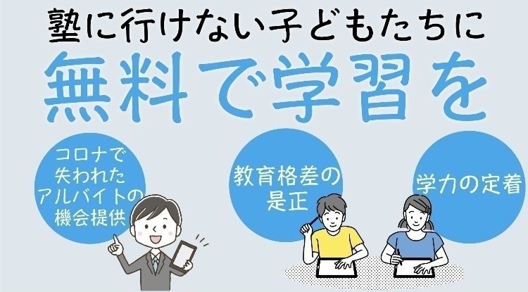 コロナ禍により大学生のアルバイトの減少がニュースになっています。現在も緊急事態宣言が出される等、予断を許さない状況で、飲食店を中心に人件費を削らざるを得ないため、大学生のアルバイト機会が減っている現状です。そこで、講師をそうした状況の大学生にも講師をお願いすることで、少しでも役に立てればと思っています。
