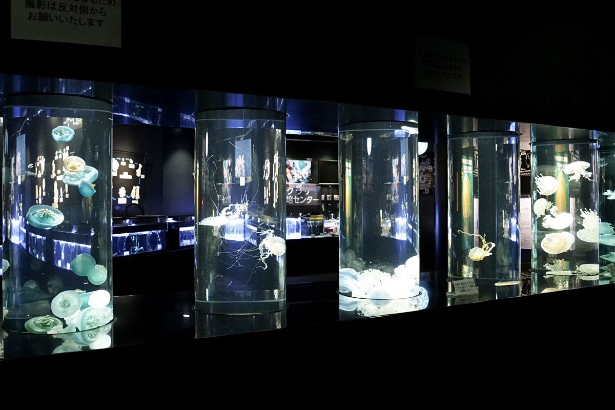 クラゲの神秘的な美しさに魅せられ、進化を続ける加茂水族館。常時60種以上ものクラゲを展示し、その生態や魅力をわかりやすく伝えています。中でも「クラゲ解説コーナー」では、様々な成長段階のクラゲを間近で観察でき、クラゲのえさやその食べ方を見られるなど「クラゲのなぜ、なに?」を学ぶことができます。