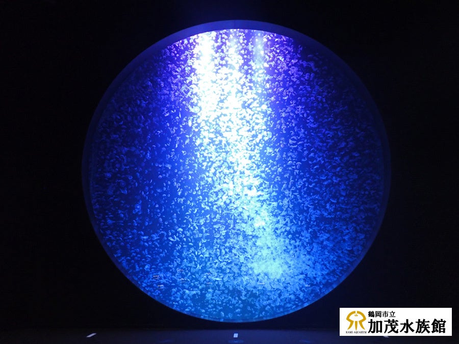 加茂水族館は、1997年にまったくの偶然から始めたクラゲ展示が大きな話題となり、現在では“クラゲ展示種類数世界一”を誇る水族館として全国的に知られています。特に、直径5mの円形水槽の中に約1万匹のミズクラゲを飼育展示しているクラゲドリームシアターはとても人気があります。