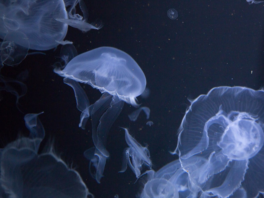 奥泉館長が一番好きなクラゲです。世界中の海で見ることができるポピュラーなクラゲでありながらも、シンプルで美しい姿をしています。展示している水族館は多いのですが、大量に繁殖させることは現在の技術でも難しいのです。「クラゲはミズクラゲに始まって、ミズクラゲに終わると思っています」(奥泉館長)