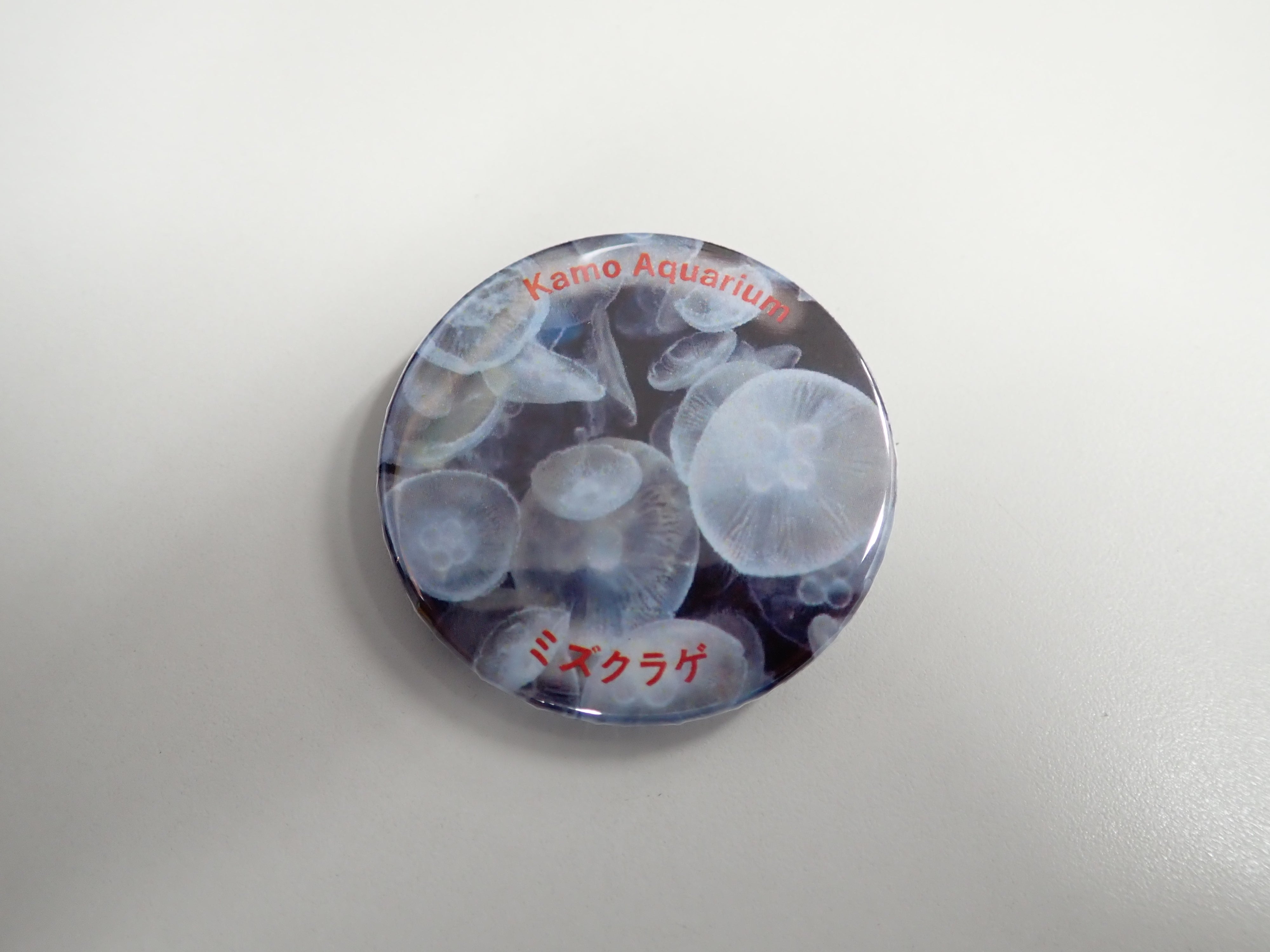 さて、リターンにあります「オリジナル缶バッジ」ですが、こちら3種類から1つ選べます。このうち「コティロリーザ・ツベルクラータ」と「ハナガサクラゲ」は今回のリターン以外でもノベルティとして使用されています。