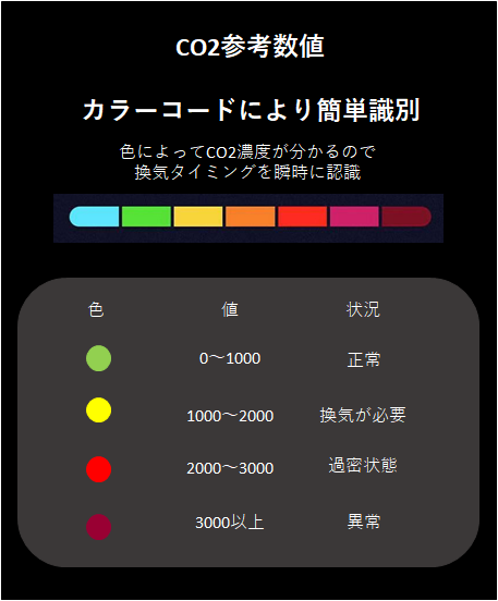 CO2の濃度を色と数値でわかりやすく認識できます!