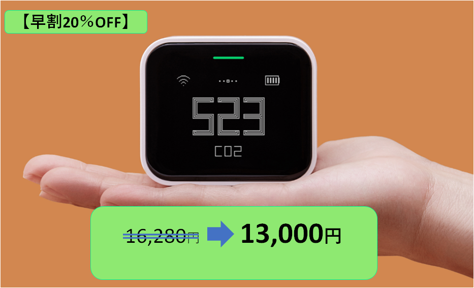 集団感染リスク回避には二酸化炭素濃度は1000ppm以下が良好状況と提示されています。