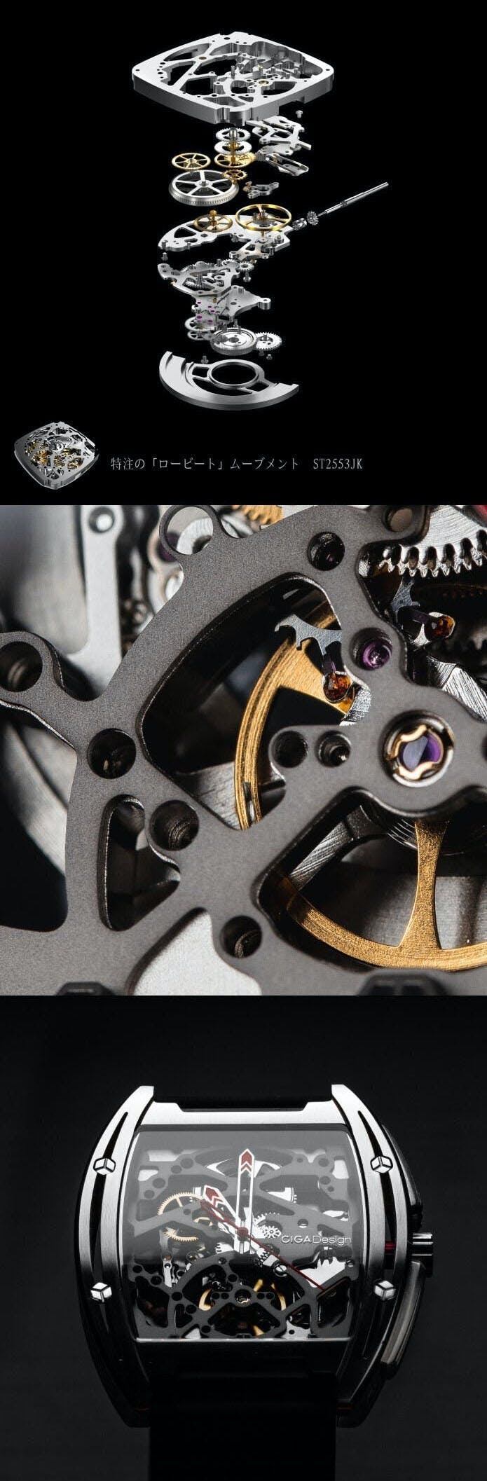 時計の機構が見える中空デザイン、チタン製・機械式時計「CIGA Design」