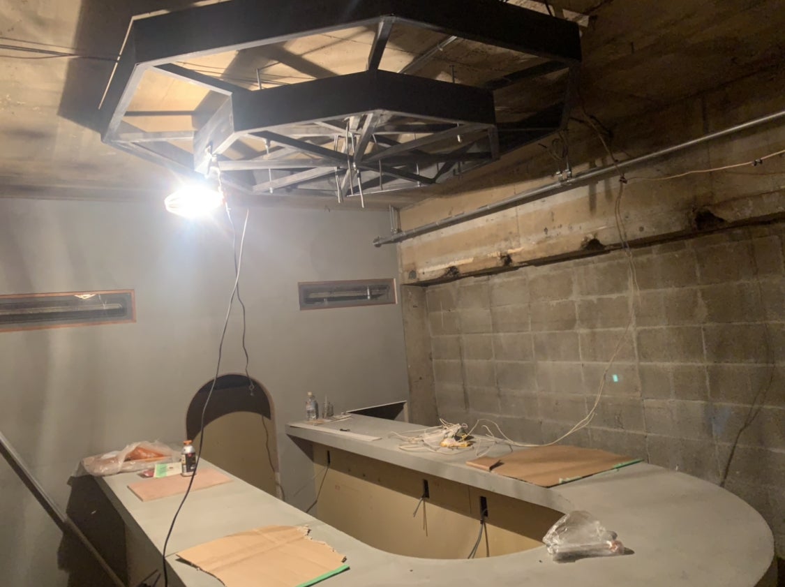 ライトの装飾をしました。この作業がかなり大変でした…丸一日頑張った甲斐もあって理想通りの形になり大満足です!また、地方の職人さんにも協力していただき、このコロナ禍に時間を作って来てくださり本当にありがとうございますー!!そのため予定していたスケジュールのズレが大きくあり、皆様に正確なオープン日をお伝えすることができなく大変申し訳ございません。必ずいい店にするためにも、もう少しお時間をいただけたらと思います。