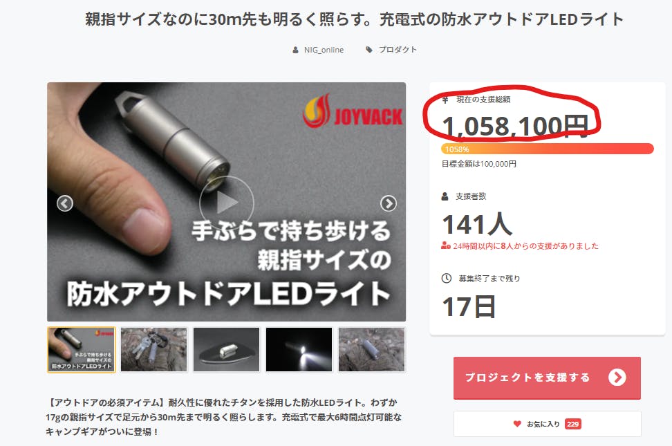 目標金額は100,000円