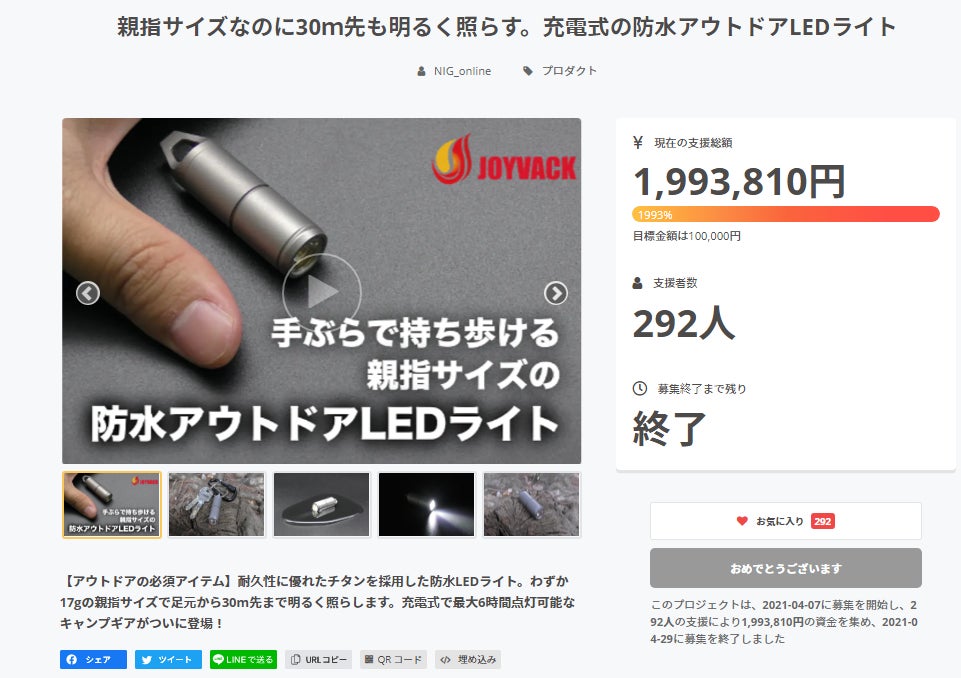 想定を大幅に上回る1,993,810円ものご支援をいただき、