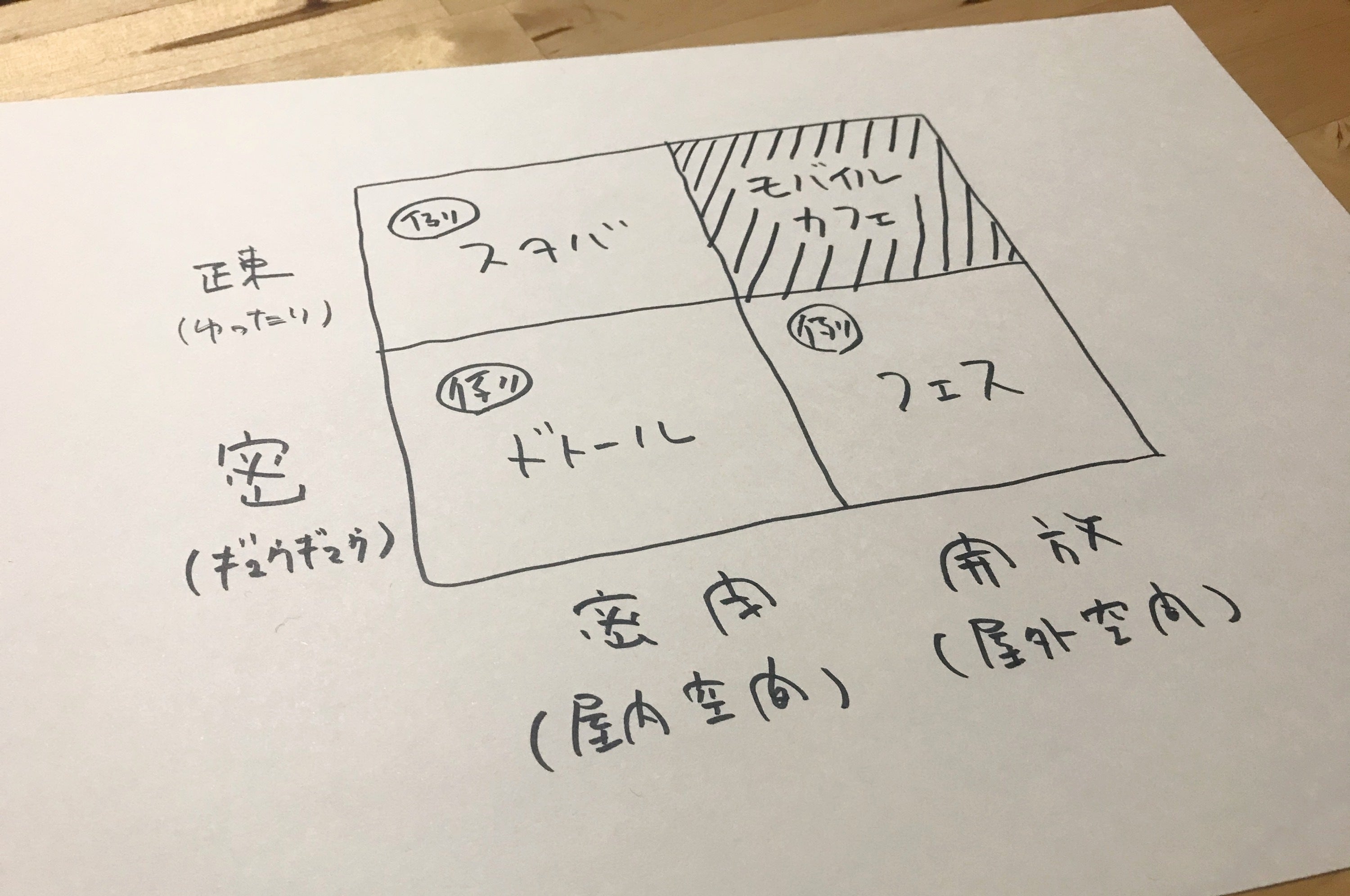僕らが目指す開疎 = ゆったり × 屋外 (ヒゲめがね豊田さん整理のもと、塚原が作図)