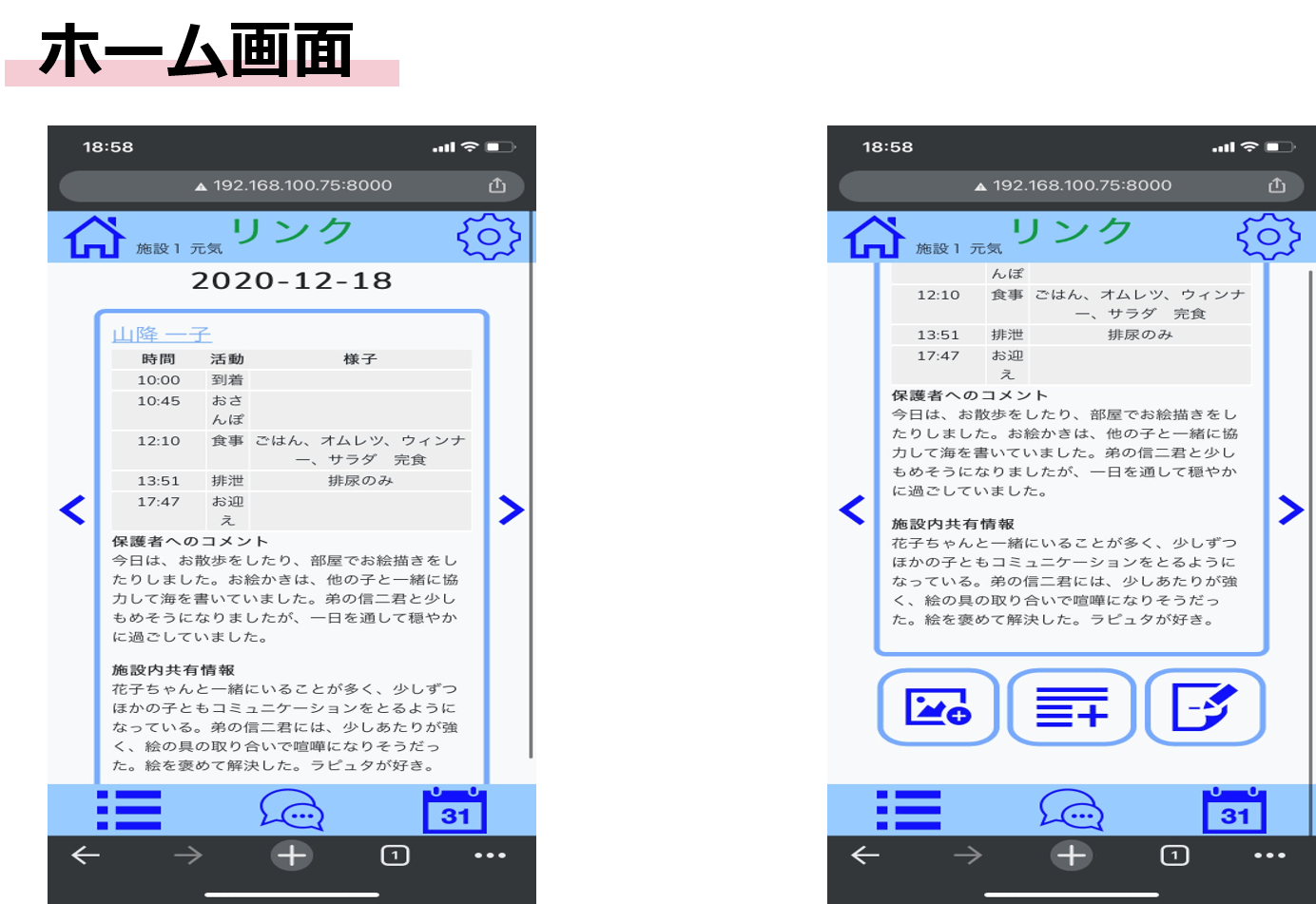 開発している「リンク」は、様々なデバイスからアクセスのできるWebアプリです。これまで、不足していた児童の情報共有を増やすことによりサービスの向上を目指しています。操作を簡単にし、誰にでも使いやすいアプリに仕上げました。