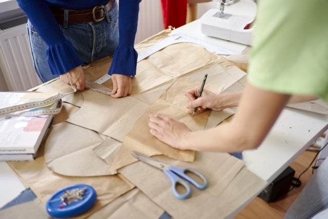 デザイン、パターン作成、生地手配、サンプル作成、発注、販売と進めて行くのに3〜4ヶ月かかります。