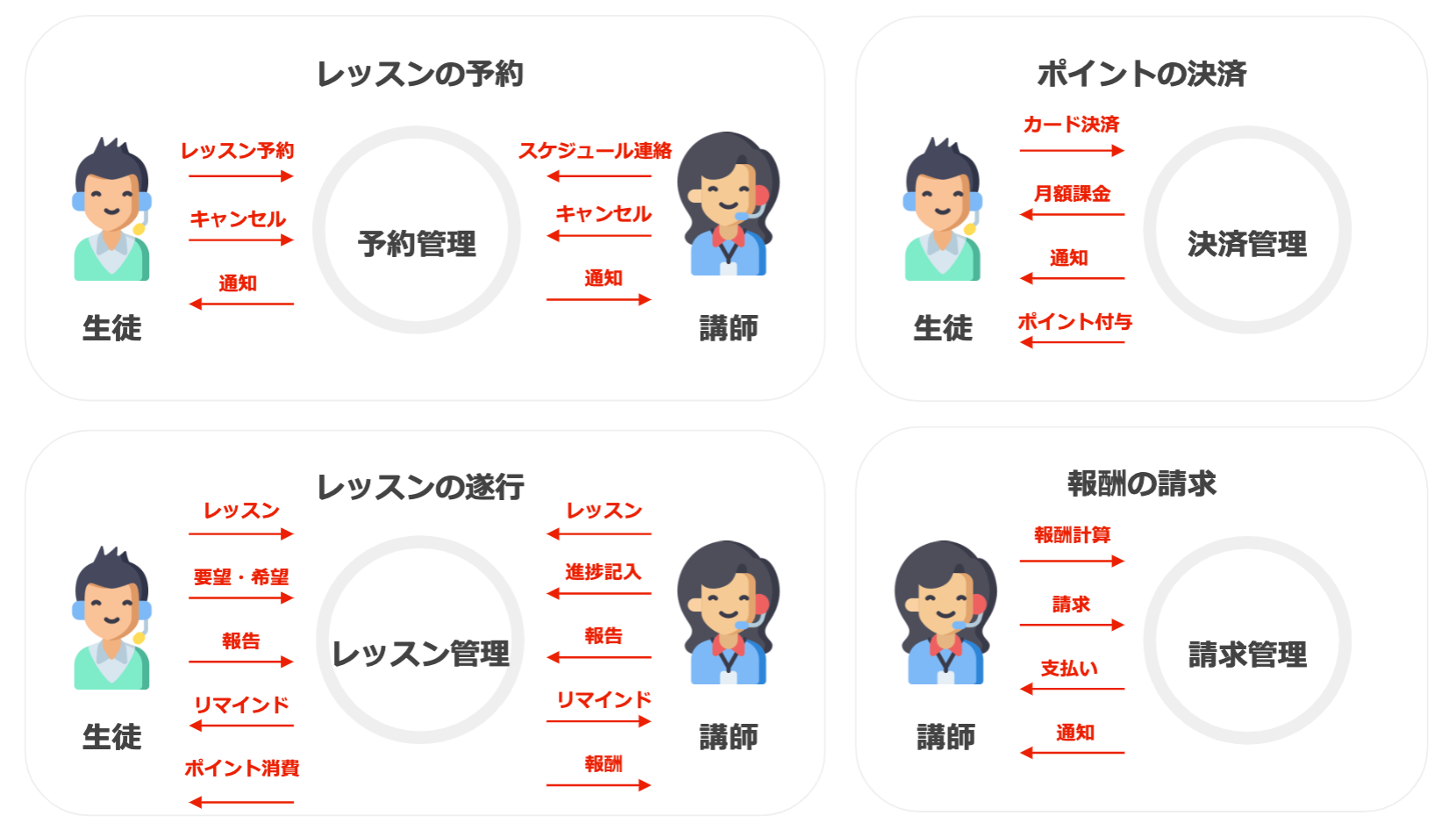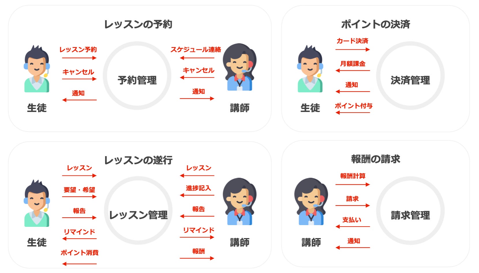 ❺面倒な事務作業をシステム化(スケジュール登録・レッスン管理・請求支払い対応)