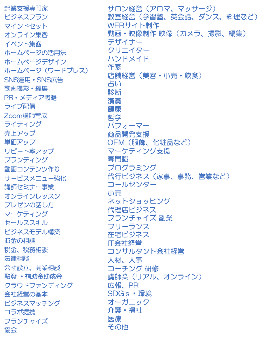 例えばビジネスプラン設計のマーケティングにおける「ポジショニング戦略」だけを特化した講座や、集客におけるSNS「Instagram」の初級編だけに特化した講座等の細部のカテゴリーで講師業が可能となります。