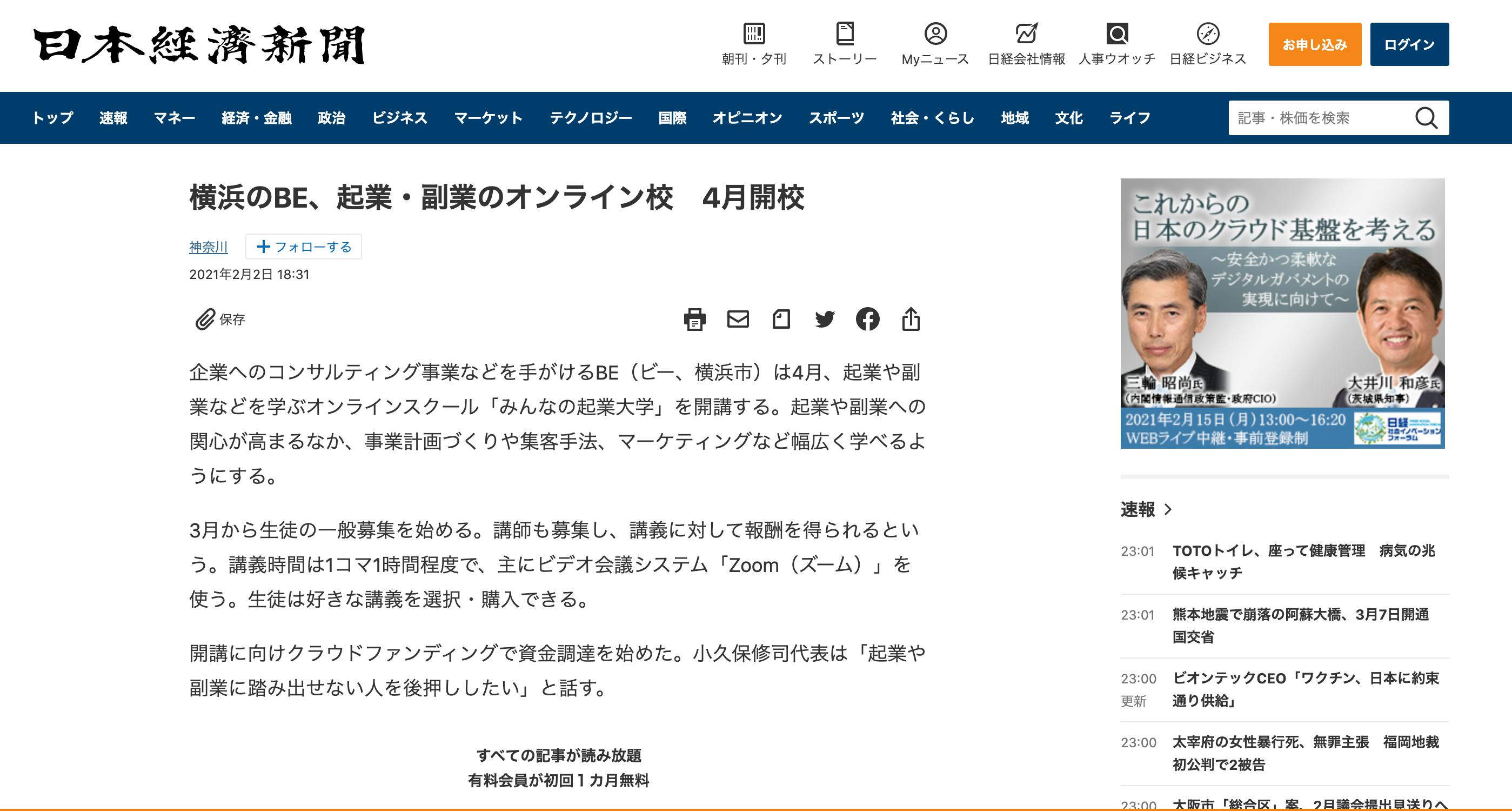 本日、日本経済新聞様のWEBニュースにも取り上げて頂きました。