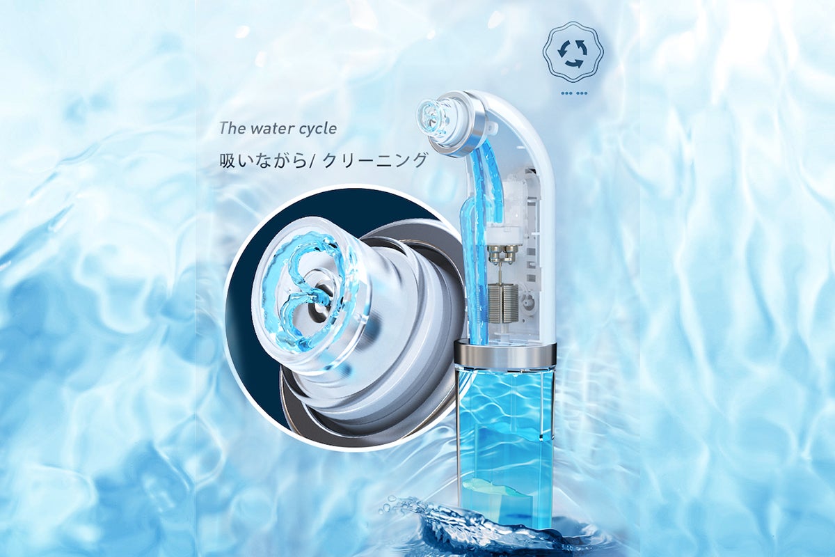 水と美容液を一定の割合で容器タンクに入れ、毛穴の汚れを吸い出した直後に、すかさず美容液が排出されるので吸収が速く、汚れの再発を防ぐこともできます。