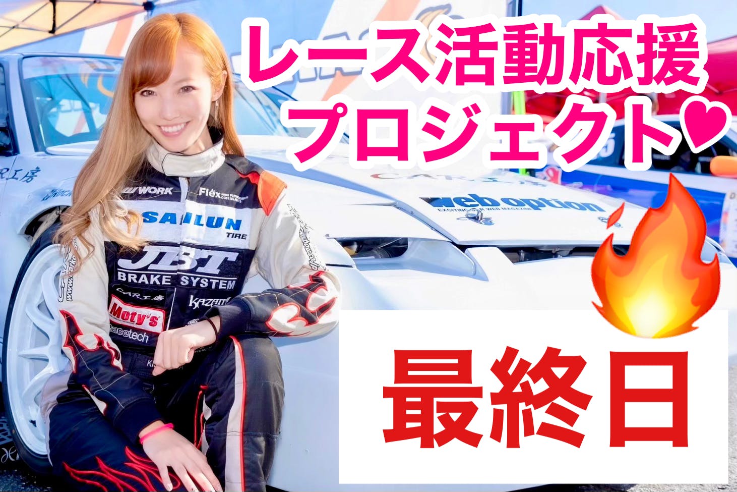2021/03/10 09:39みなさんこんにちは!粟野如月ですプロジェクトも残り2日!!12日(金)23:59までとなっています現在57%達成中♪まずは昨年の1040,000円越えが目標です!!お力添えのほどよろしくお願い致しますさてドリフトとはちがう競技ですが、先日ゼロヨン大会に参加させていただく機会がありました!https://youtu.be/rBA4H4wr4-s準決勝でうれしい!?失格となりました、、その理由とは!?ぜひ見てください♪よろしくお願いします^^ もっと見る