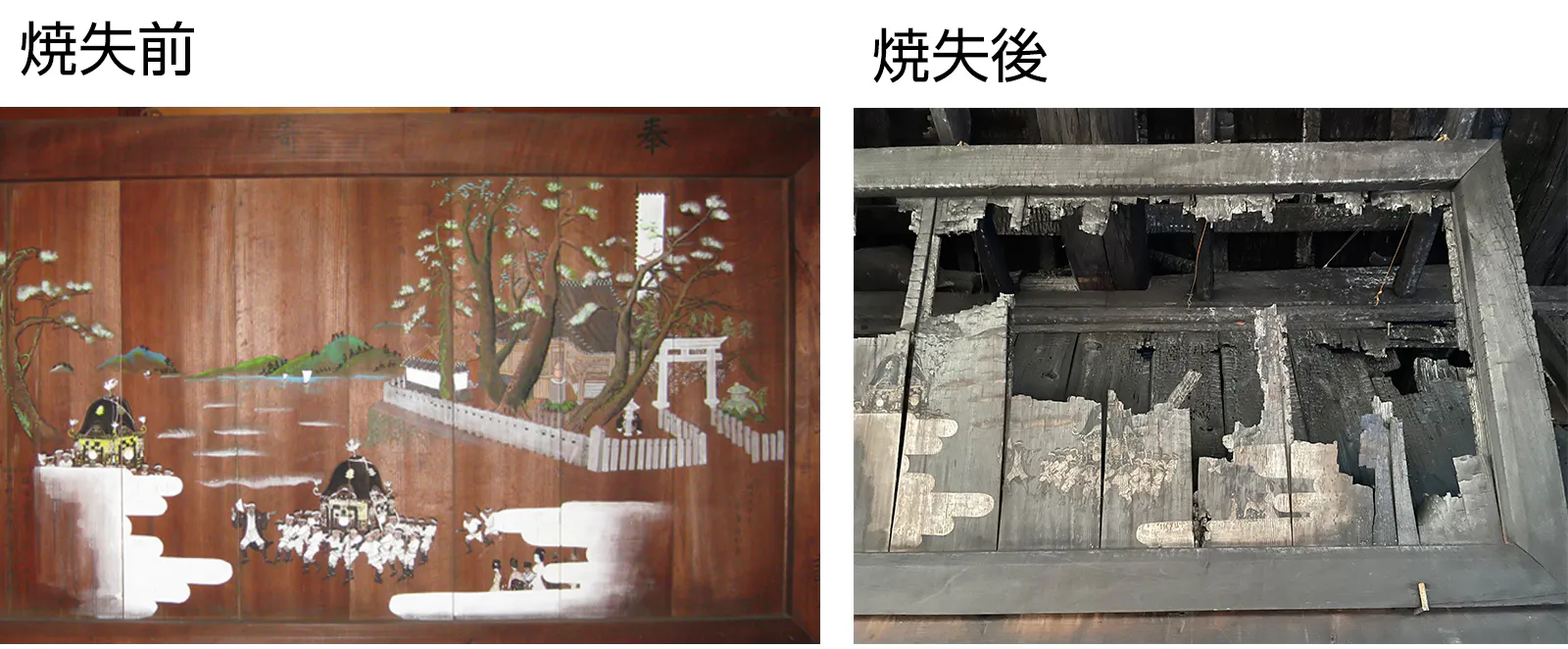 幸い、神輿の損失は免れたものの100年以上の歴史ある「大絵馬」は消失