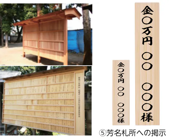 ①芳名札所への掲示※支援時、必ず備考欄にご希望のお名前をご記入ください。